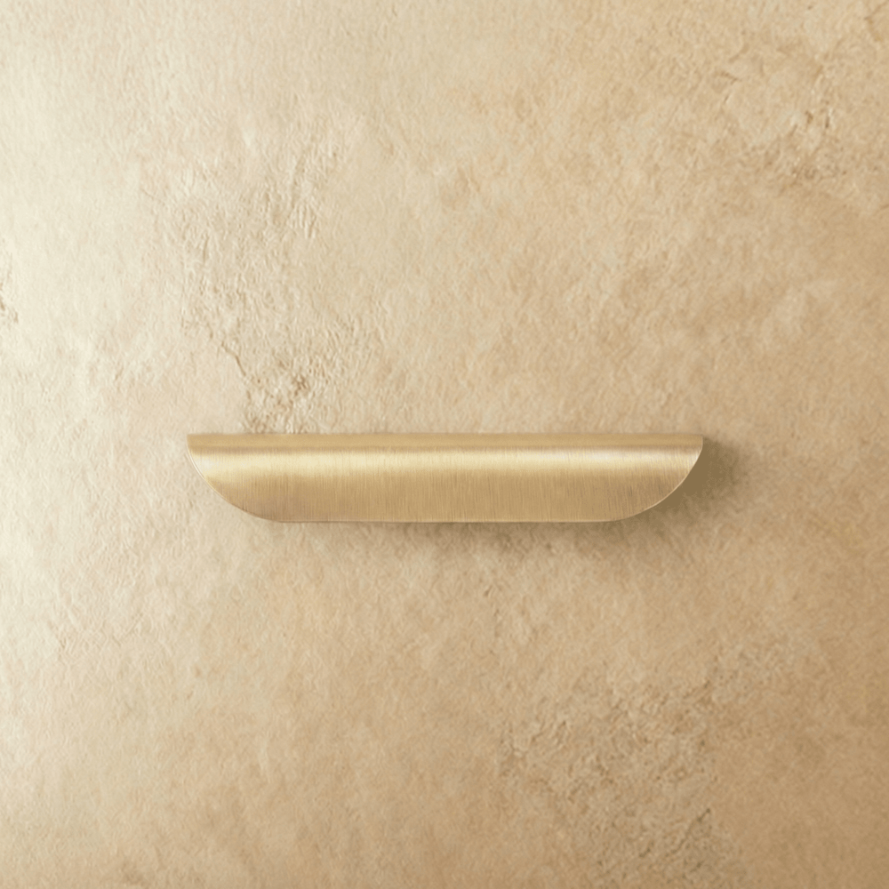 The Arcen Edge Pull is a modern cabinet hardware essential, featuring a sleek low-profile design and crisp detailing for a clean architectural look. Its edge-mount style sits neatly on cabinet and drawer fronts, creating a seamless finish while keeping surfaces uncluttered. Crafted for durability with a warm brass tone, it’s ideal for kitchen cabinets, bathroom vanities, wardrobes, dressers, and built-ins in contemporary interiors.
