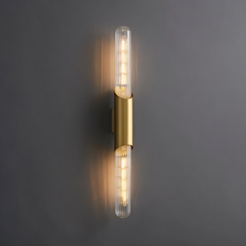 Brass frame and glass tube deliver soft, diffused lighting and modern elegance — perfect for hallways, bedrooms, and living spaces.
