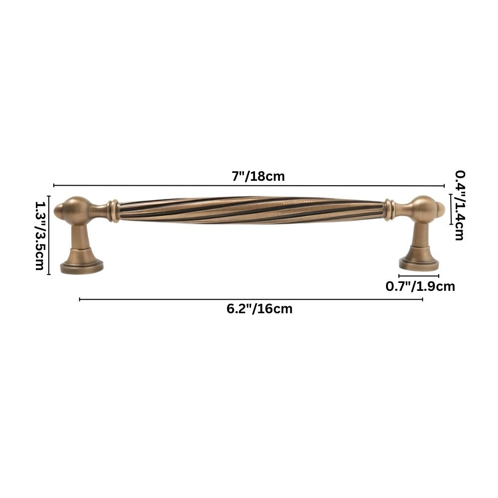 The Artemis Knob and Pull Bar, crafted from brass, features a twisted, fluted design with an antique finish. Perfect for cabinets, wardrobes, and sliding glass panels, it suits modern and traditional spaces.
