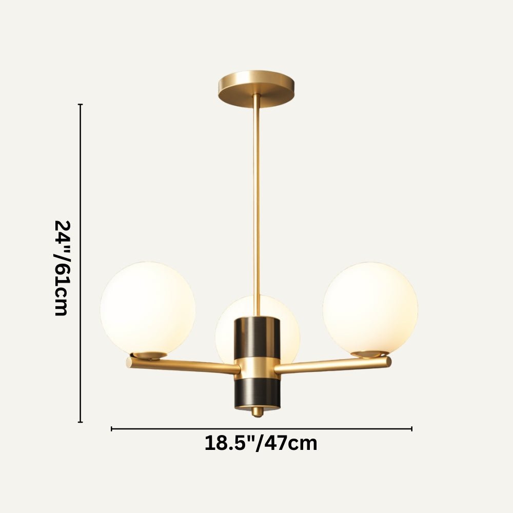 Equipped with globe-shaped shades, the chandelier provides a soft, warm light that creates a cozy and inviting atmosphere.