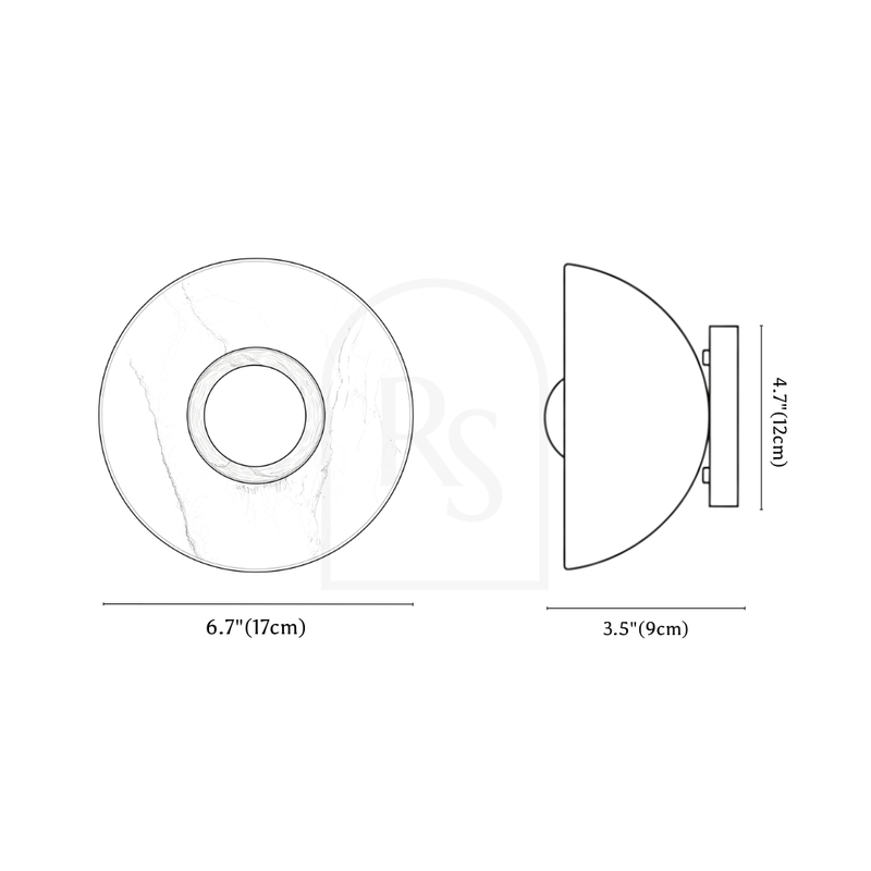The Bagal wall lamp is a sculptural light fixture crafted from premium marble, iron, and glass. Its circular marble shade features organic veining, creating a refined contrast against the metallic base. The centrally positioned glass diffuser emits soft, ambient lighting, making it an ideal choice for accent walls, hallways, and modern interiors. With a blend of natural stone and sleek metal, this wall lamp serves as both an artistic statement and a functional light source, enhancing contemporary, minimalist, and luxurious spaces.