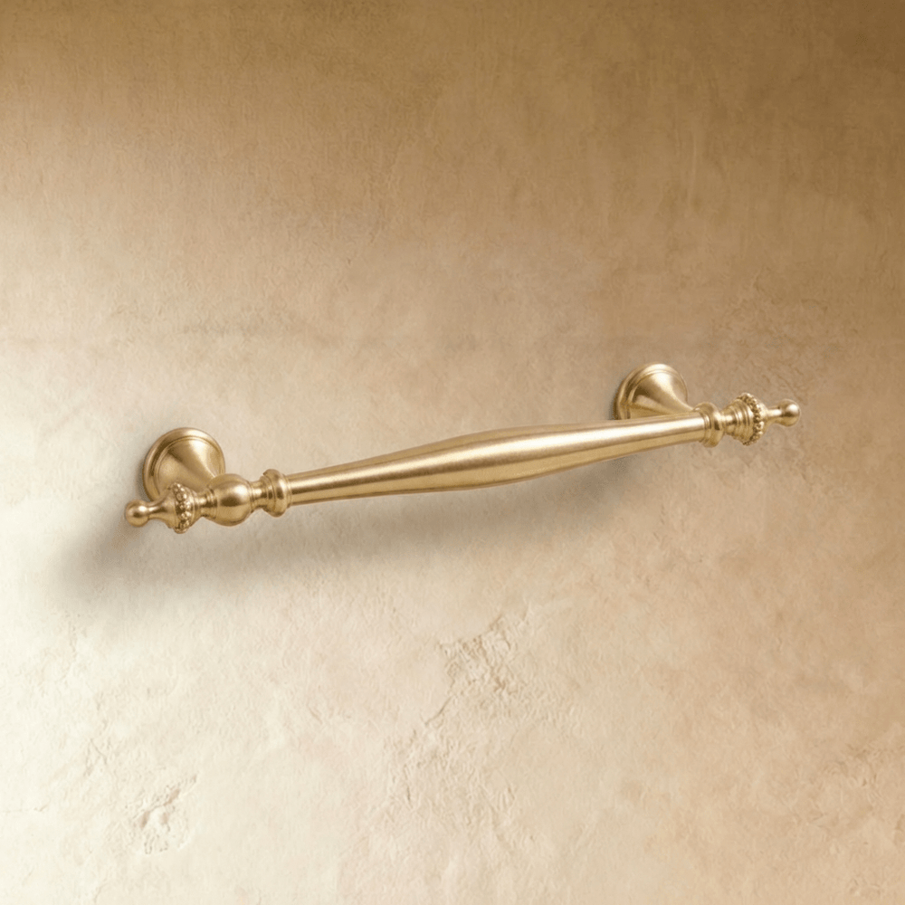 Classic brass cabinet knob and pull bar with contoured form, brushed finish, and smooth grip, ideal cabinet hardware for drawers, wardrobes, and cabinetry.