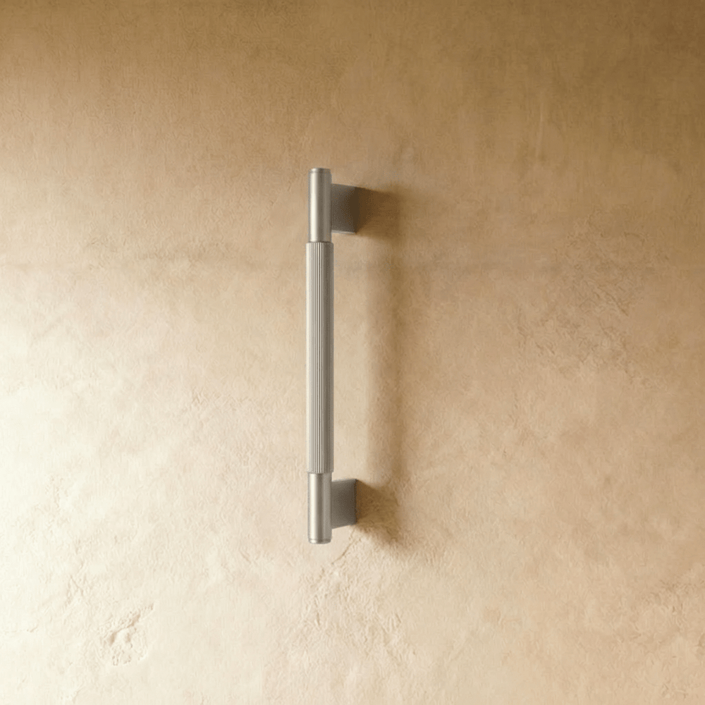 The Breno Pull Bar is a modern solid brass cabinet handle designed with a sleek cylindrical profile and a finely textured grip for added control and comfort. Its clean, linear form is finished with smooth end caps for a crisp architectural look that feels refined without being overly decorative. Built for everyday durability, Breno is ideal for kitchen cabinets, drawers, wardrobes, and interior doors, offering a cohesive hardware upgrade in contemporary and transitional spaces.