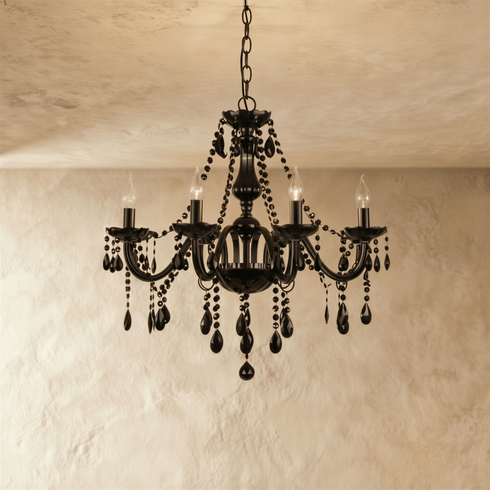 Black crystal chandelier transforms any room into a sophisticated haven, offering a captivating focal point — perfect for dining rooms and grand entryways.