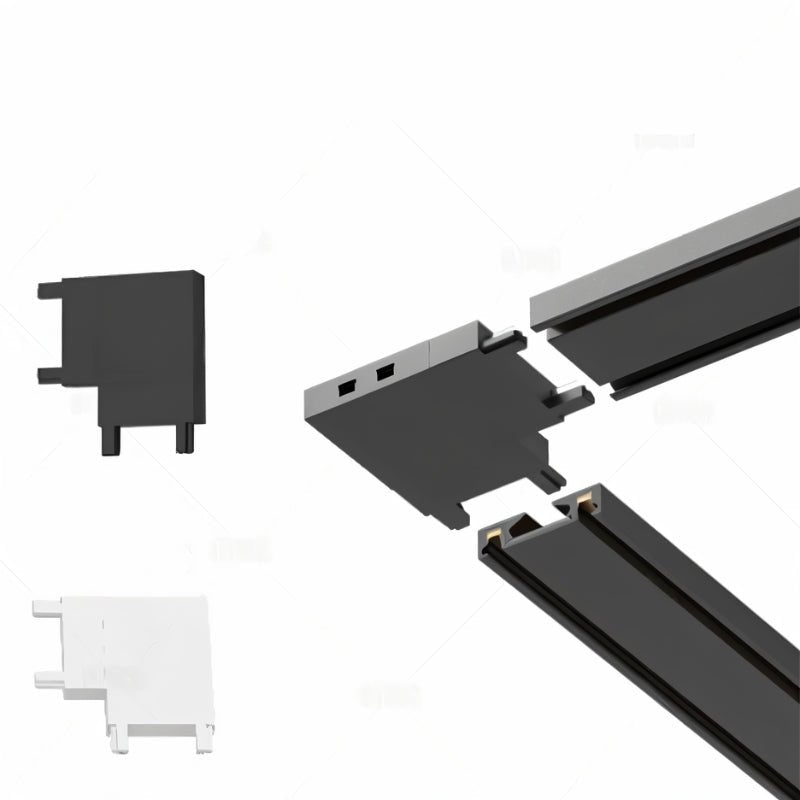 L-Connector (Ceiling to Wall): Allows transition from ceiling-mounted tracks to wall-mounted segments.