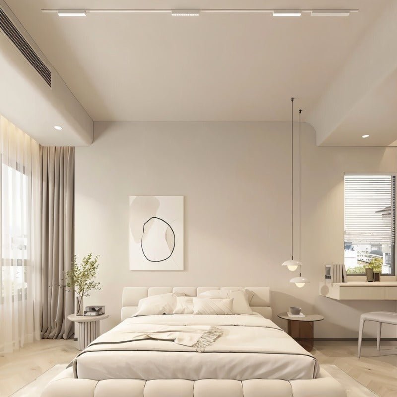 Mounting Styles: The magnetic track system can be installed in four configurations: Plaster-in (trimless), Embedded (recessed), Surface-mounted, and Suspended (hanging). Choose the method that matches your space and ceiling structure. Power Supply: Connects directly to a ceiling or wall junction box via an integrated power feed. Some layouts may use a remote driver or surface driver box. Fixture Attachment: Light modules snap magnetically into the track and can be repositioned without tools. Ceiling Compatibility: Supports installation on flat or sloped ceilings. Dimming: Many modules are dimmable. Always verify compatibility with dimmers and power drivers before use.