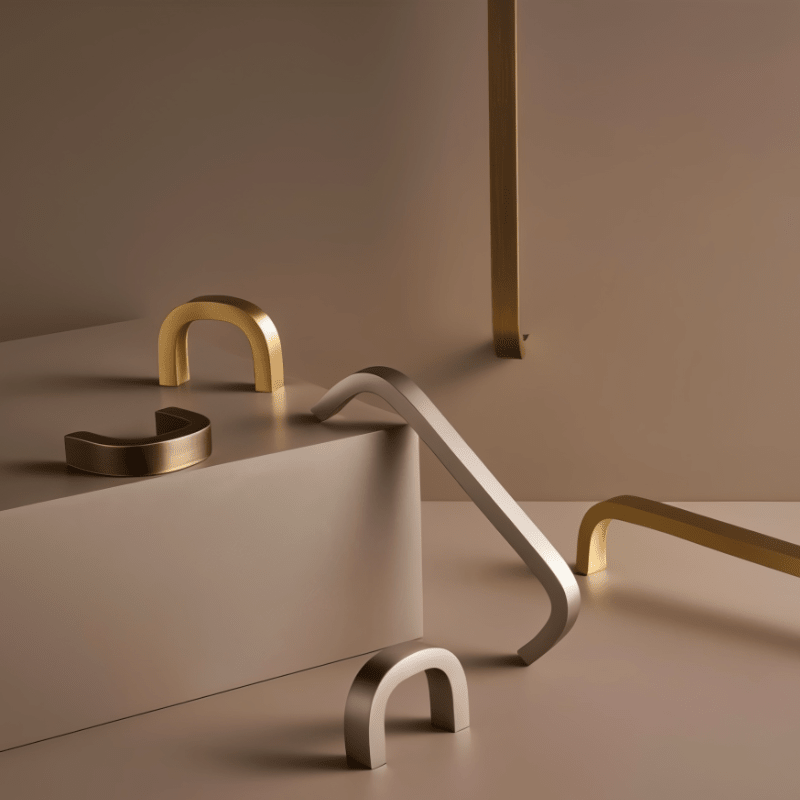 • Warm brass finish adds subtle luxury and visual depth to furniture.