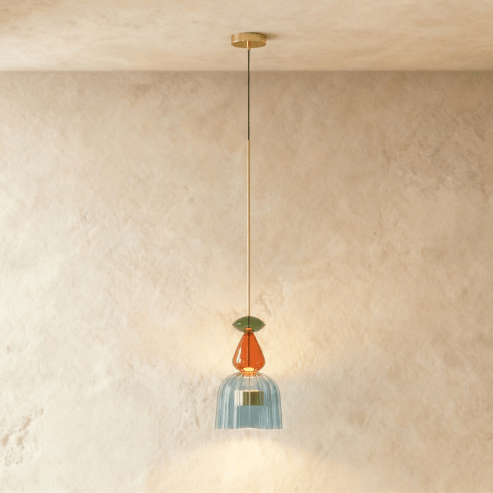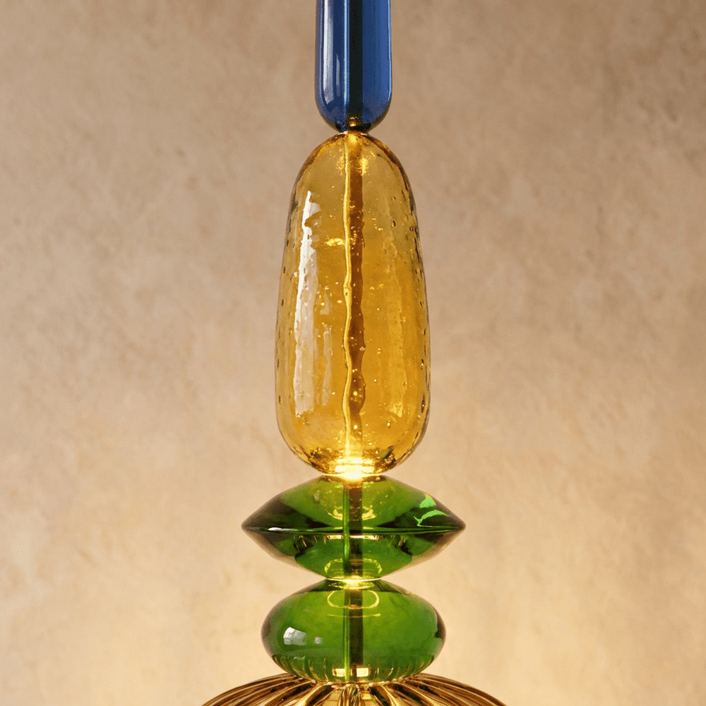 The Cambell Pendant Light enhances room ambiance by casting a captivating and radiant glow through its vibrant stained glass lampshade, adding refined beauty and timeless style to any space.