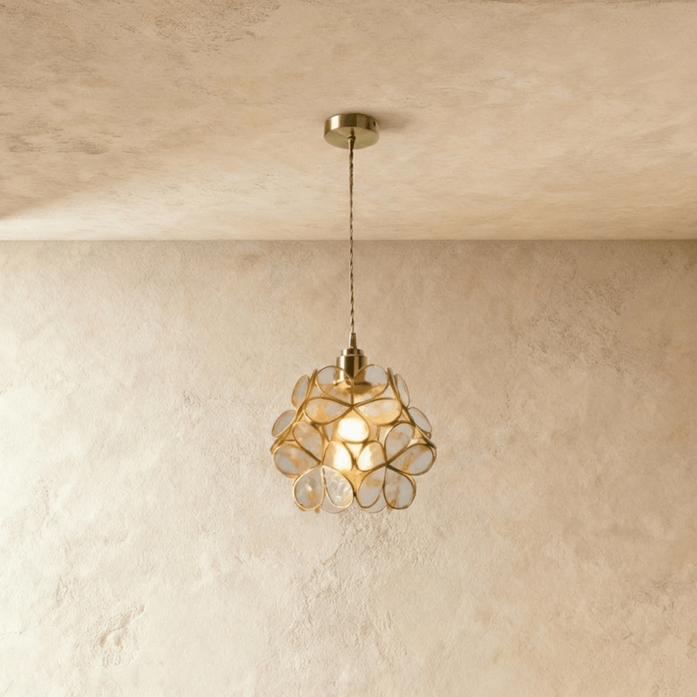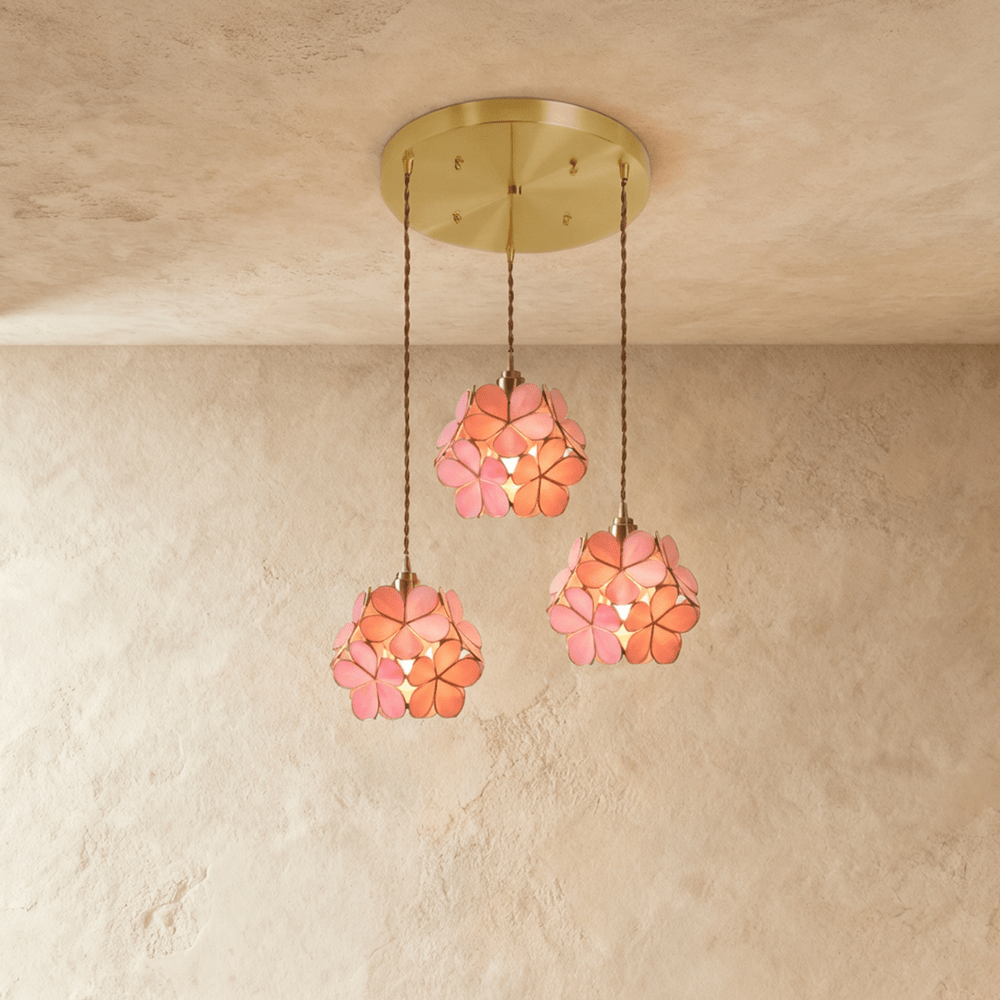 The Camellia Pendant Light is meticulously crafted from premium-grade glass and metal materials, ensuring both durability and a high-quality finish that exudes timeless elegance.