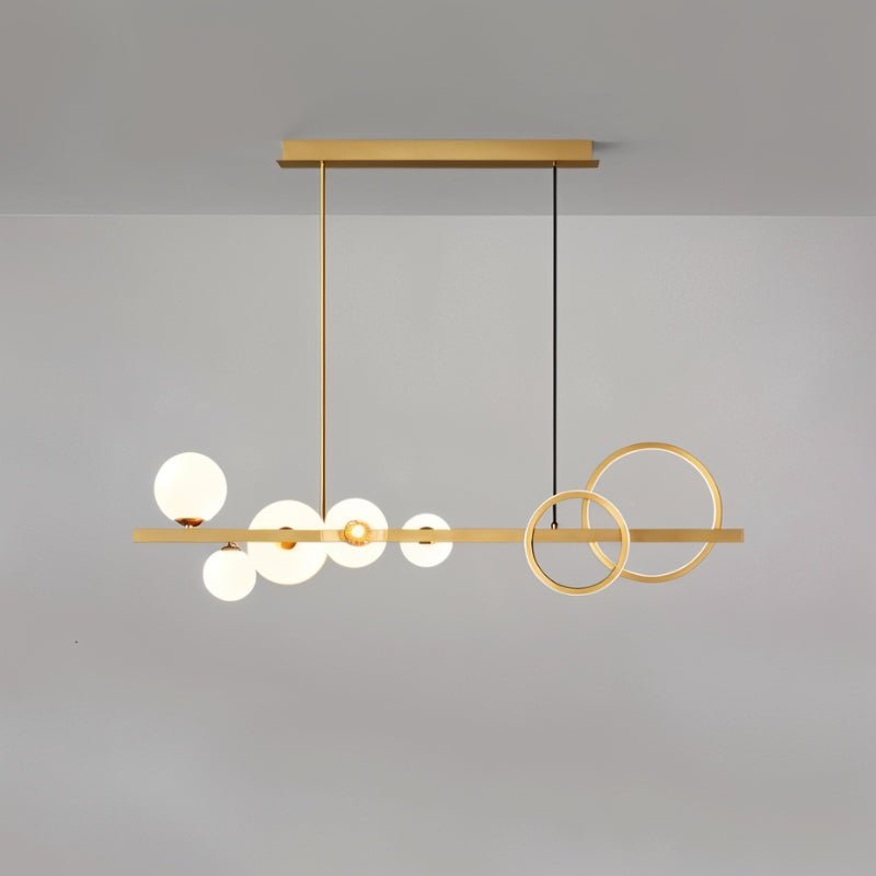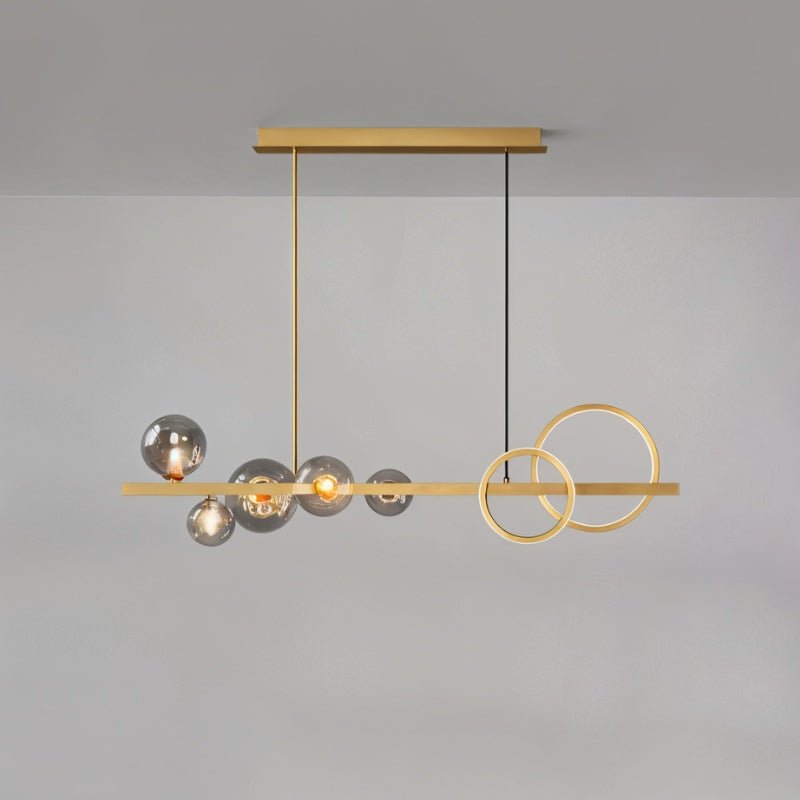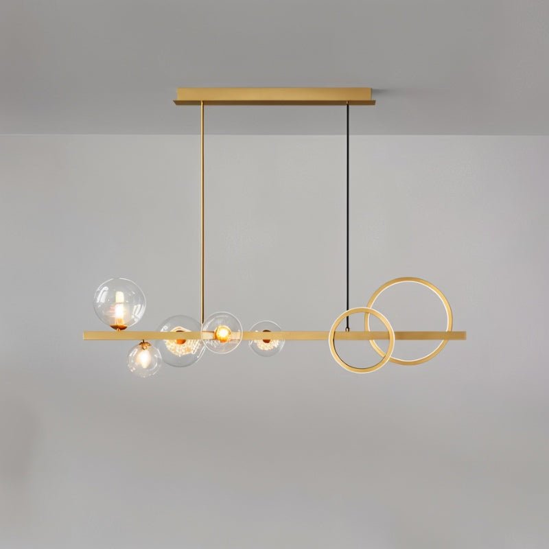 The Caroline Pendant Light is a meticulously created linear luminary that emits a comfortable glow that effortlessly enhances any room. Featuring a sturdy iron body with a black and gold finish, this pendant light comes with three distinct glass bulbs for enhanced versatility and elegance. This contemporary and stylish chandelier would be a striking centerpiece above a dining table or kitchen island.