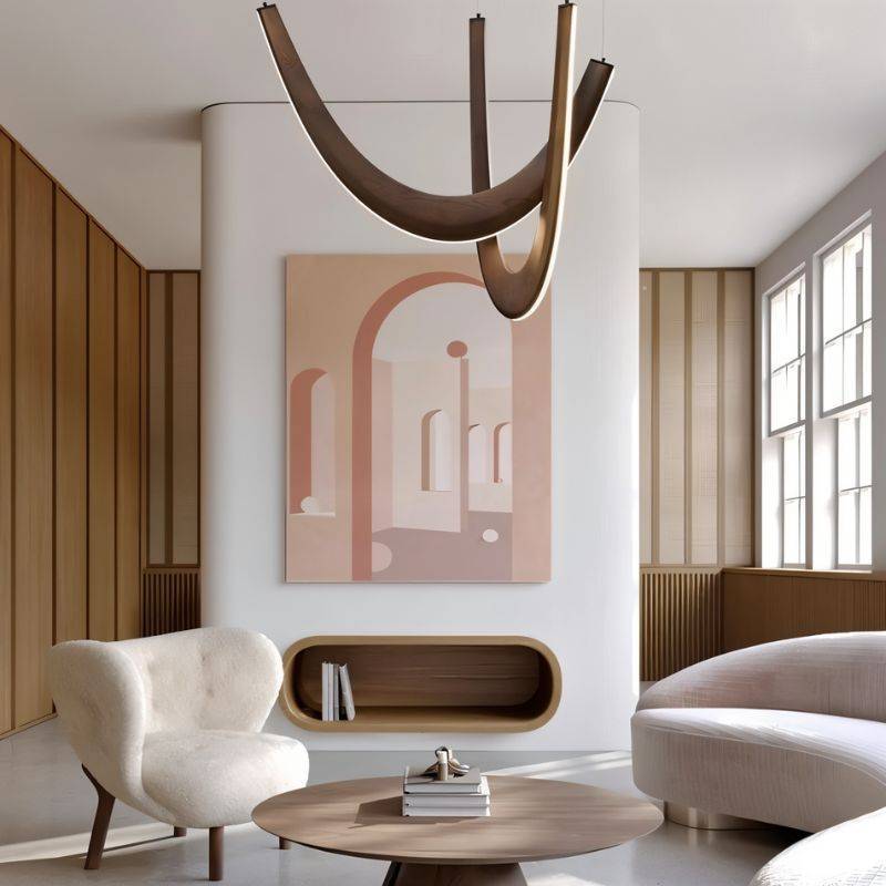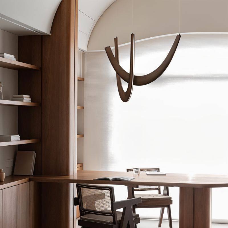 The Chime Chandelier is meticulously crafted from high-quality solid oak wood, ensuring both durability and a timeless aesthetic. Its unique boomerang-shaped loops create an eye-catching, modern focal point that perfectly balances irregular charm with minimalist design. This handcrafted piece is designed to add a touch of rustic elegance and character to any space.