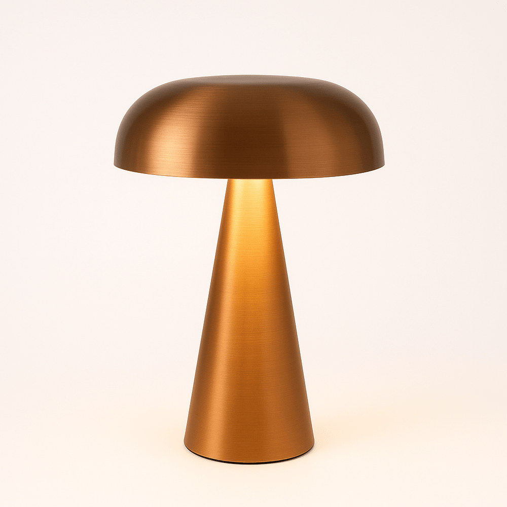 Matte gold finish and tap control offer effortless brightness adjustment — perfect for bedside tables or desks, enhancing your space with mid-century charm.