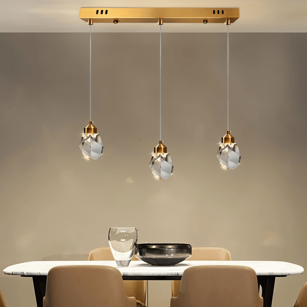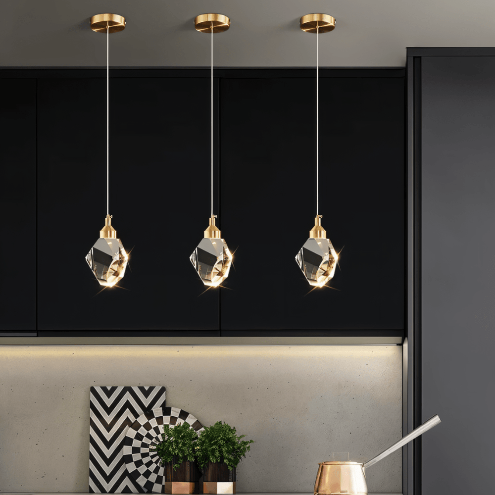 The number of crystal pendants determines the mood — from subtle accent lighting to grand, multi-drop drama.