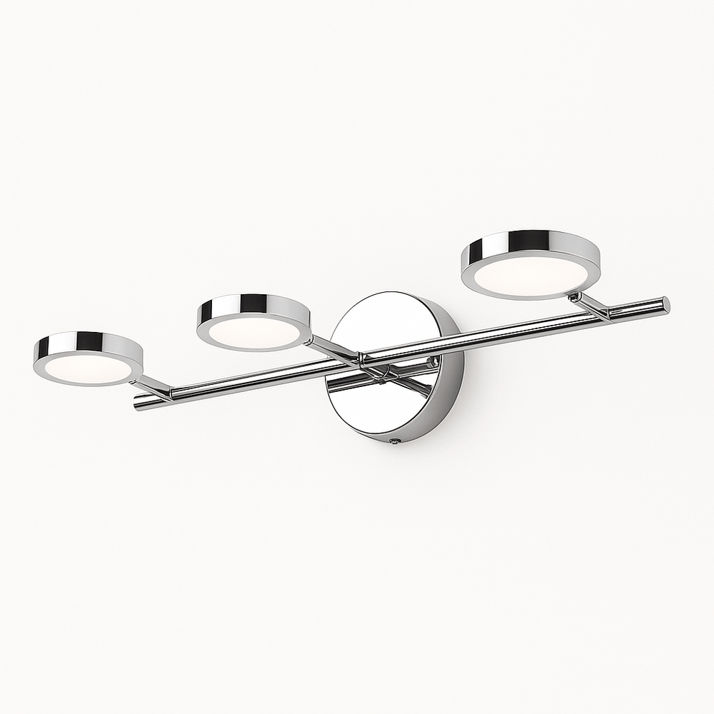 The Dasti Wall Lamp is a modern light fixture designed for vanity areas, hallways, and accent walls. Crafted from aluminum, iron, stainless steel, and PC, its sleek structure features three circular LED lights mounted on a polished chrome frame. The minimalist design provides uniform, glare-free illumination, making it ideal for contemporary interiors. With an IP20 rating, this wall lamp is perfect for indoor use, adding both style and functionality to any space.