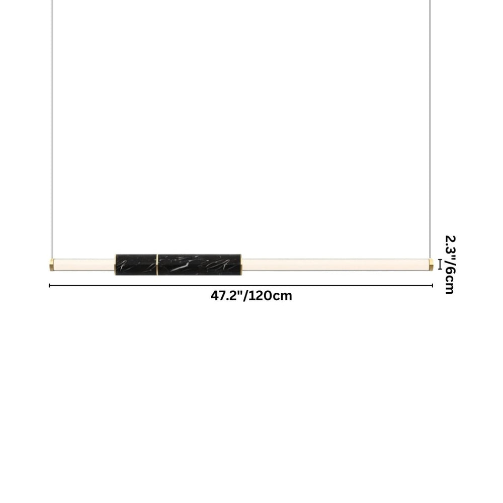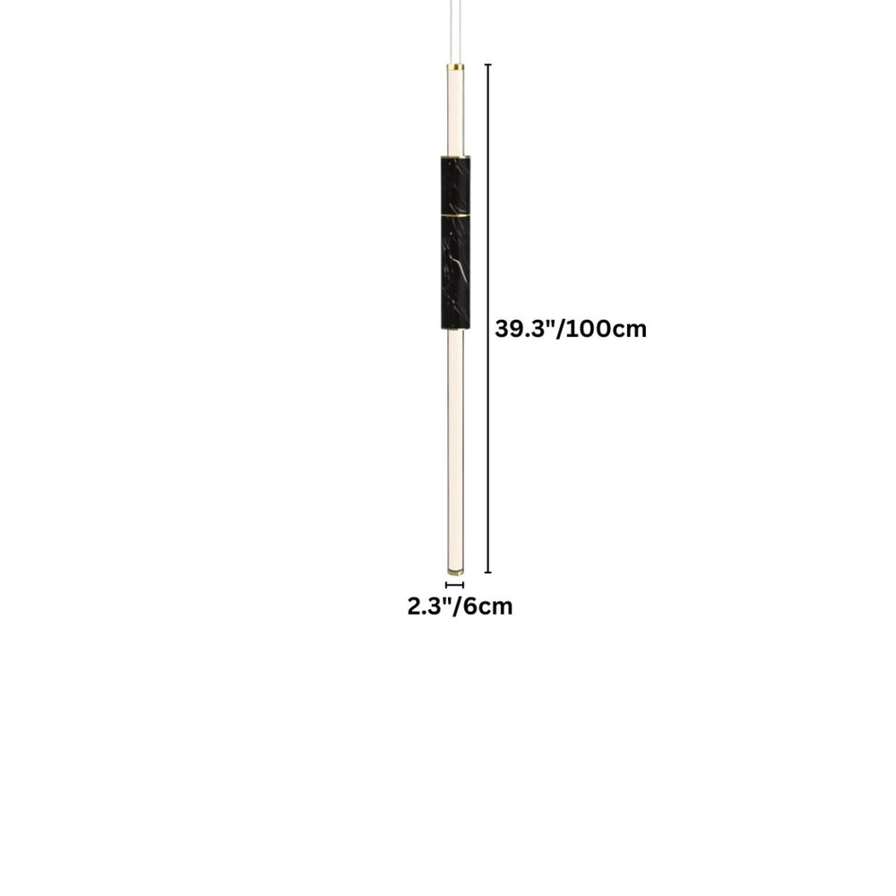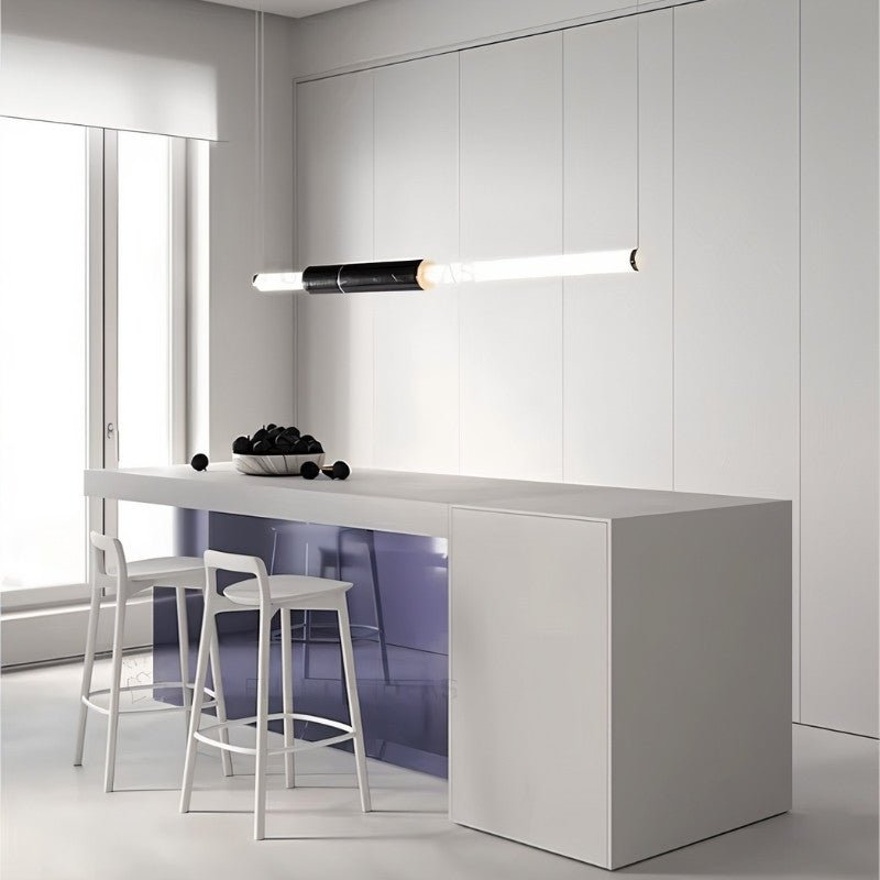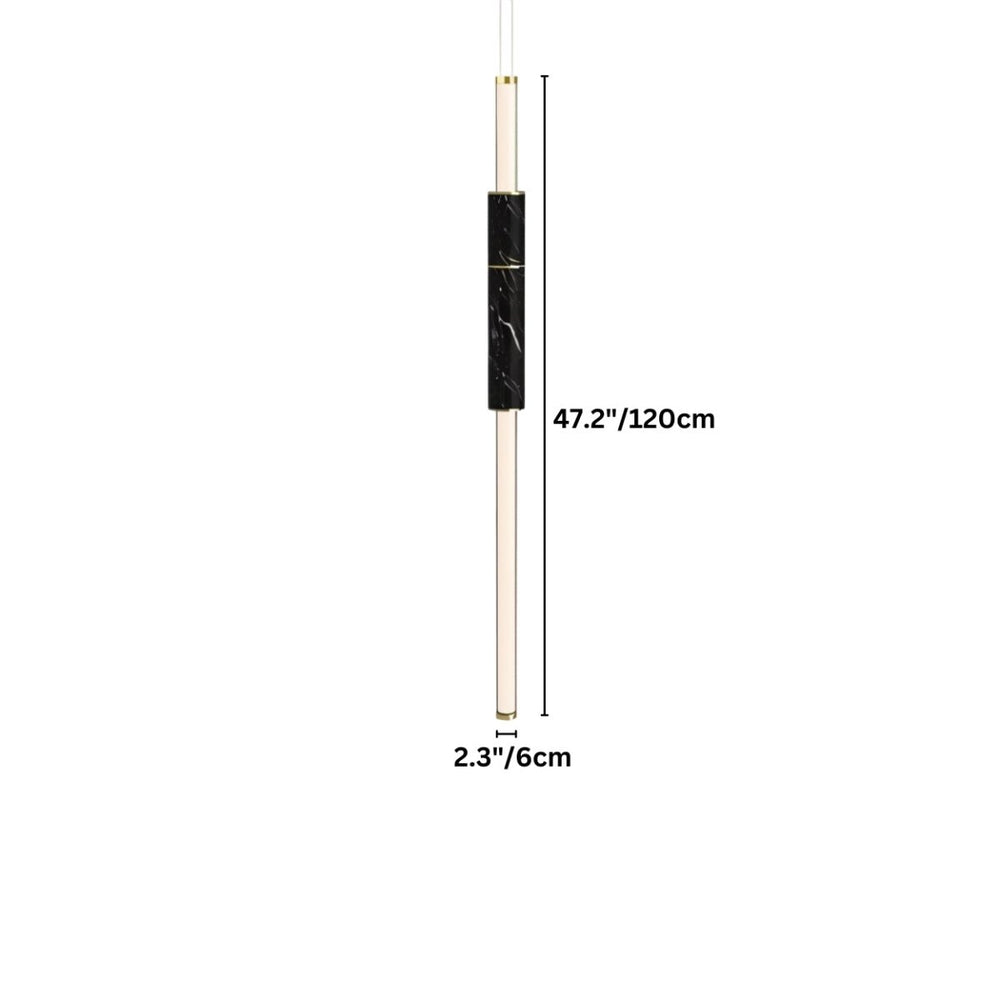 The Delia Pendant Light features a bold geometric design with sleek acrylic tubes, marble accents, and a sturdy steel frame. Its modern, asymmetrical structure provides a striking focal point, emitting soft, diffused light for a sophisticated ambiance. Ideal for living rooms, dining areas, and contemporary spaces, it seamlessly blends luxury with functionality.