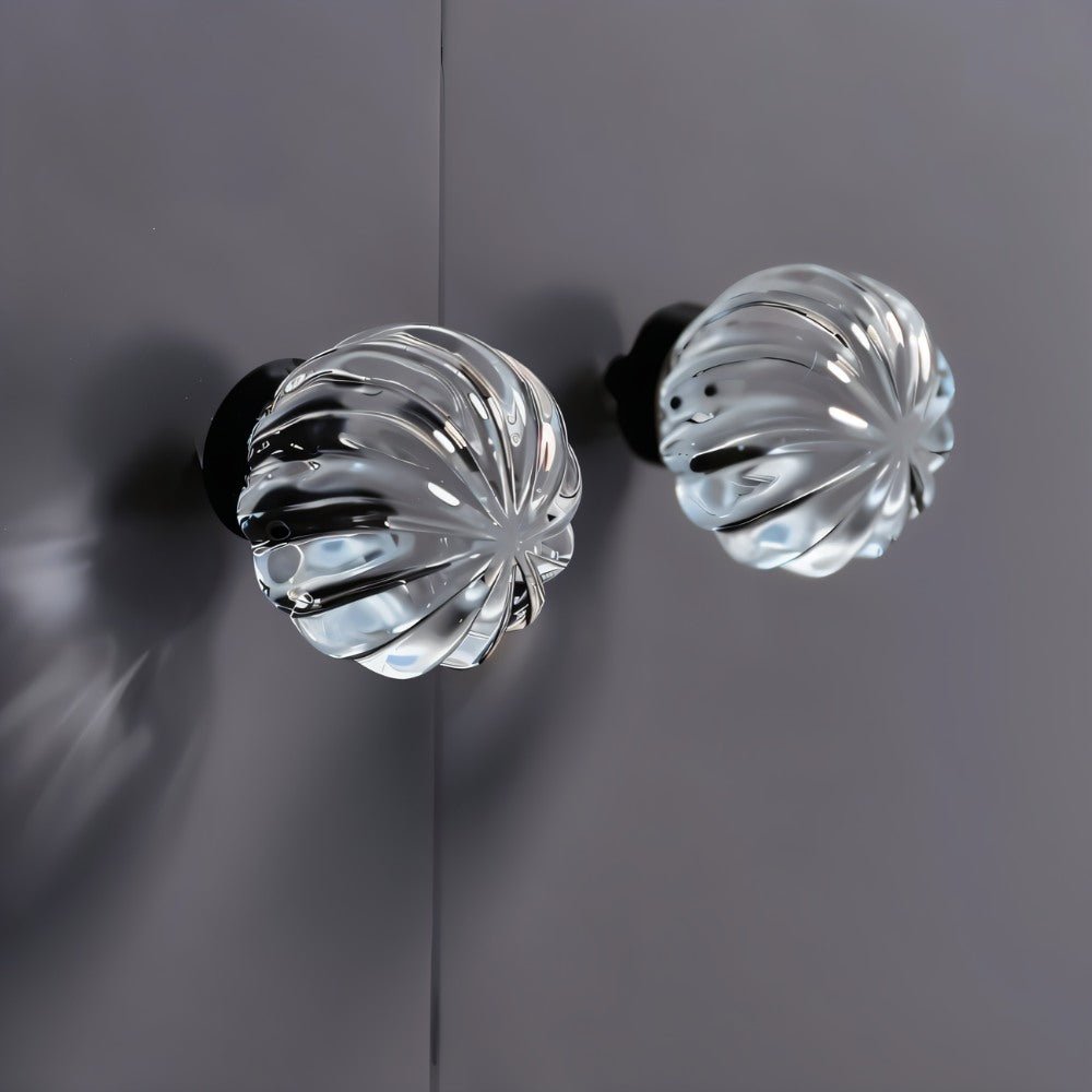 09Dions is a crystal glass knob with a refined, sculptural design. Featuring two distinct shapes ribbed spherical and smooth oval it adds elegance and depth to cabinetry. The fluted texture enhances light reflection, creating a luxurious visual effect. A sturdy brass base ensures durability and a secure grip.