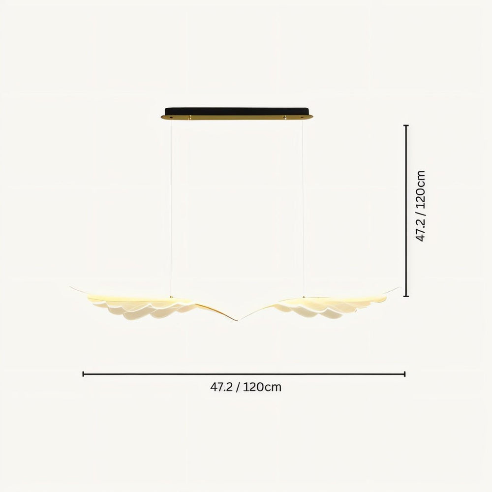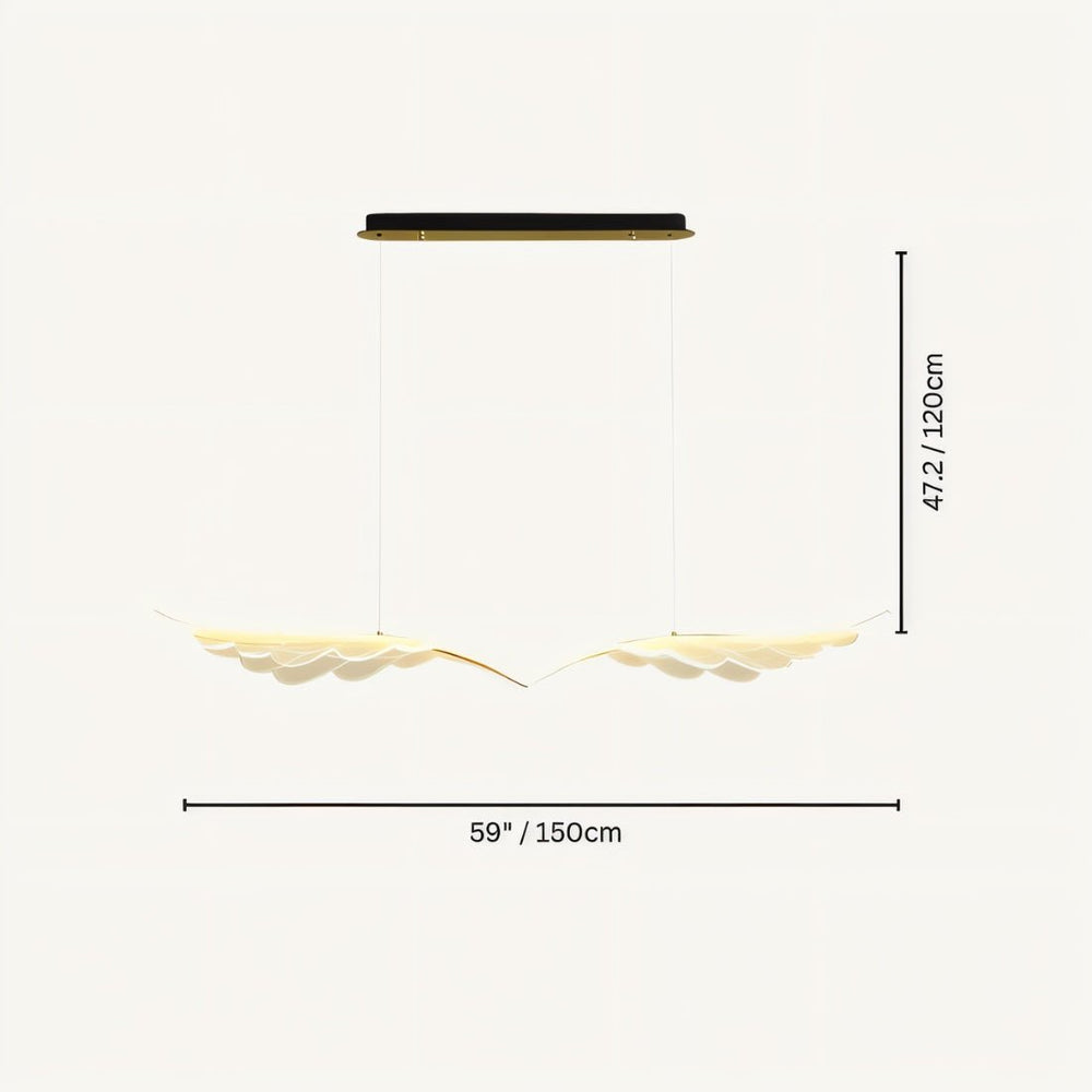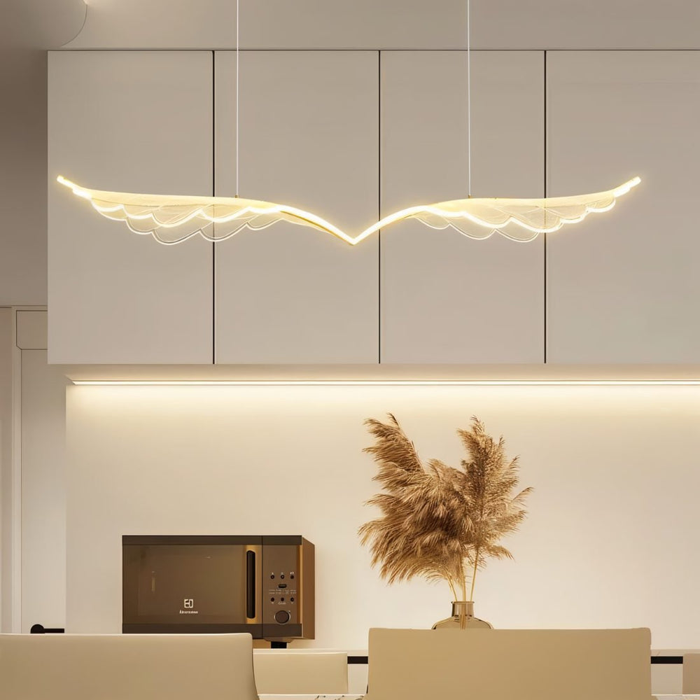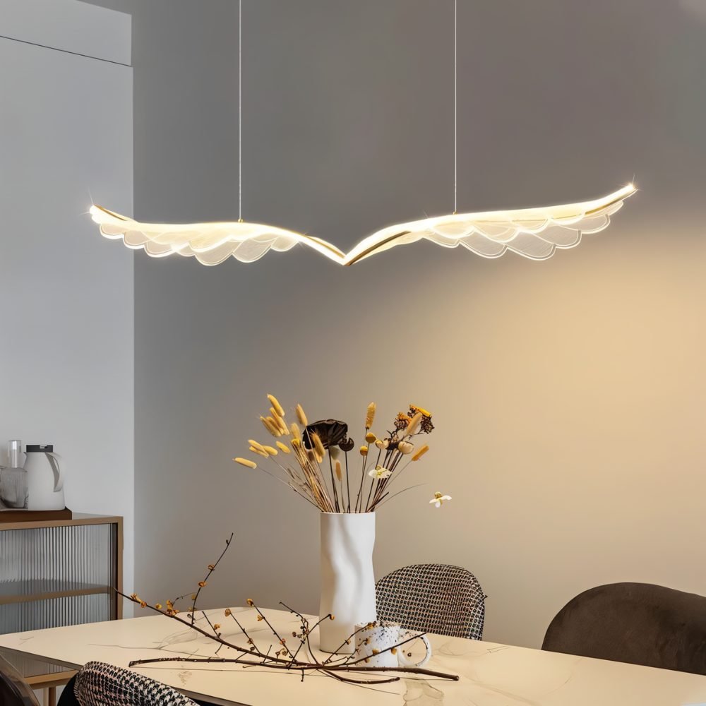 The Djilyna Pendant Light creates a luminous ambiance through integrated LEDs within its wing-shaped clear acrylic and aluminum frame, casting a mesmerizing glow that transforms any space.
