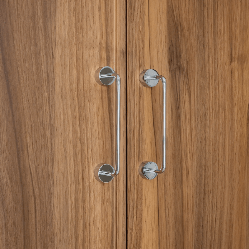 The Drix Pull Bar is a sleek solid brass cabinet handle designed with a straight cylindrical bar and rounded mounts for a clean, architectural look. Its minimalist profile and smooth design creates a refined finish that suits modern, contemporary, and transitional interiors. Designed for cabinet doors, drawers, wardrobes, and built-in furniture, this brass pull handle offers a comfortable grip and long-lasting durability. The premium brass construction adds warmth and timeless appeal to kitchens, bathrooms, and custom cabinetry.