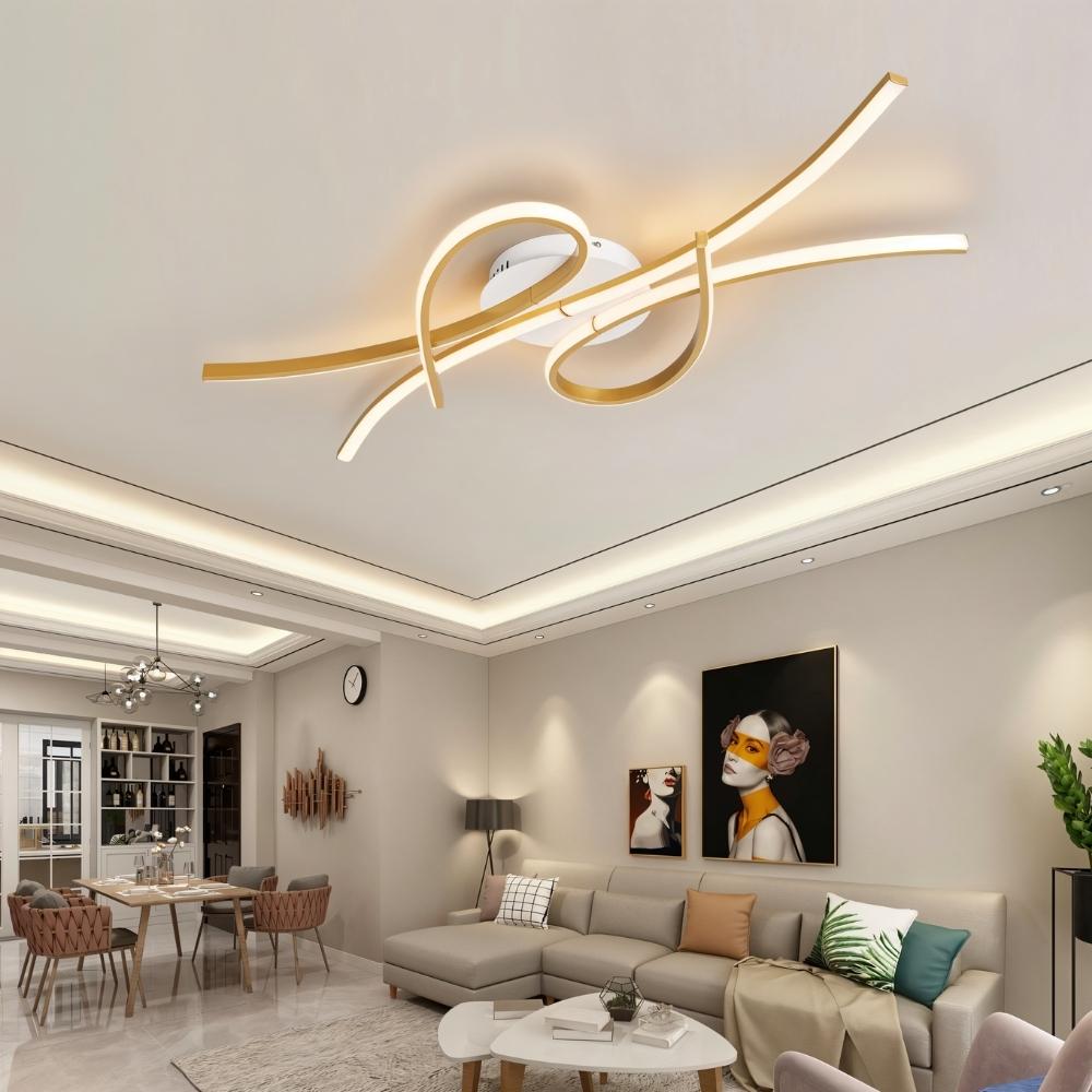 The Fabil ceiling light is a bold, sculptural light fixture designed to make a statement in modern interiors. Its fluid, intertwining LED bars create a dynamic, abstract form, casting soft, ambient illumination across the ceiling. The flush-mounted structure ensures a sleek, space-saving look, making it ideal for living rooms, bedrooms, and dining areas. Crafted from high-quality aluminum and acrylic, this ceiling light combines durability with artistic elegance, offering both functionality and contemporary appeal.