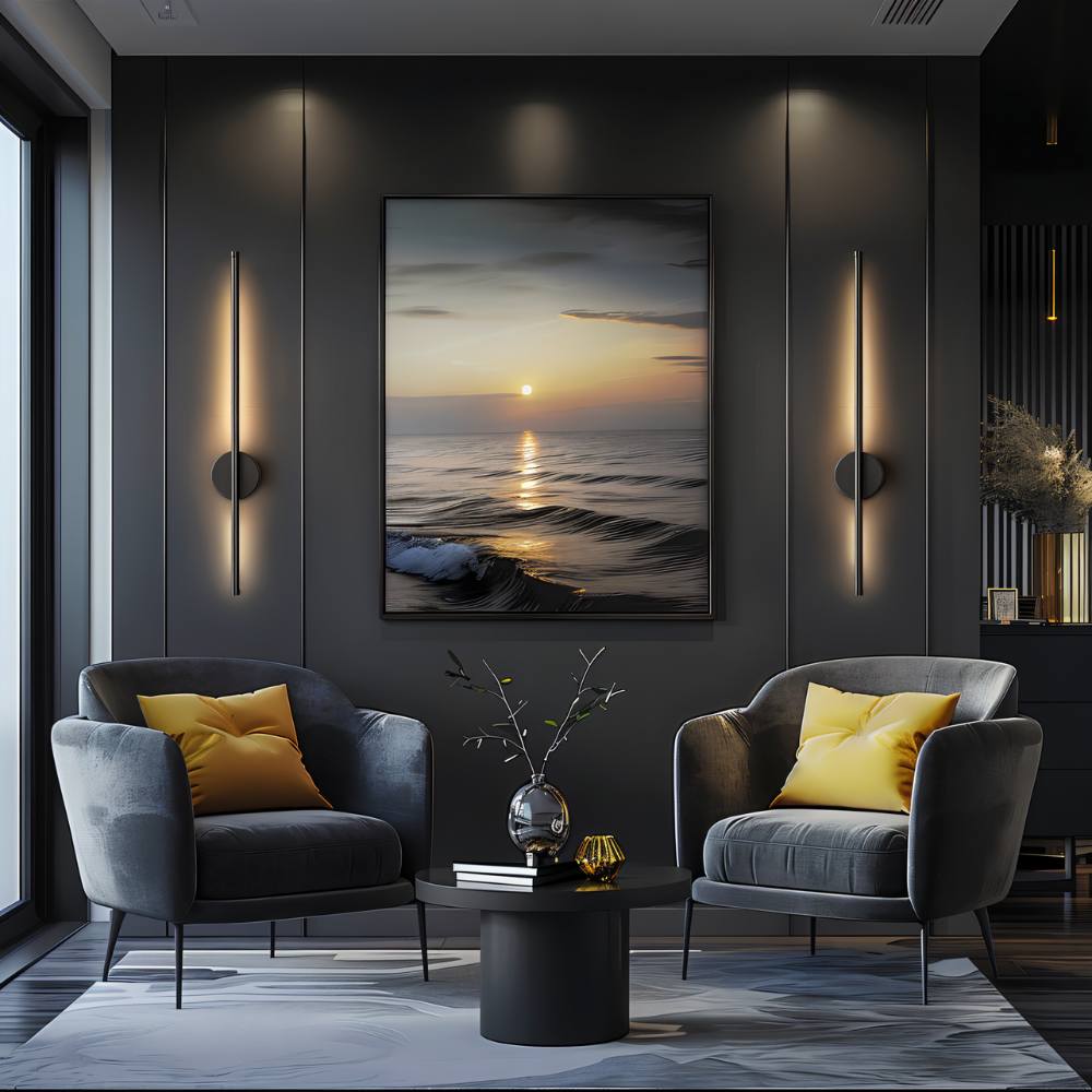 Battery-operated aluminum wall lamp offers sleek, cable-free installation and warm backlighting — perfect for contemporary living rooms, bedrooms, and entryways.