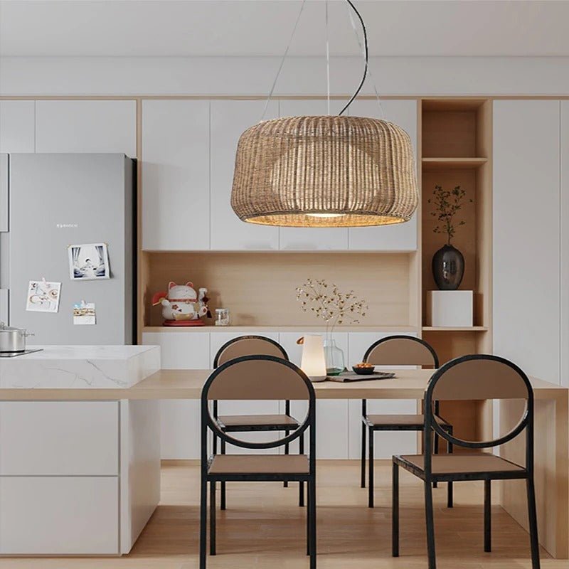 Absolutely! The Feor Pendant Light is crafted with intricate rattan weaving, ensuring not only a sophisticated and artistic design but also durability and lightweight versatility, making it perfect for various settings like dining rooms, living rooms, and balconies.