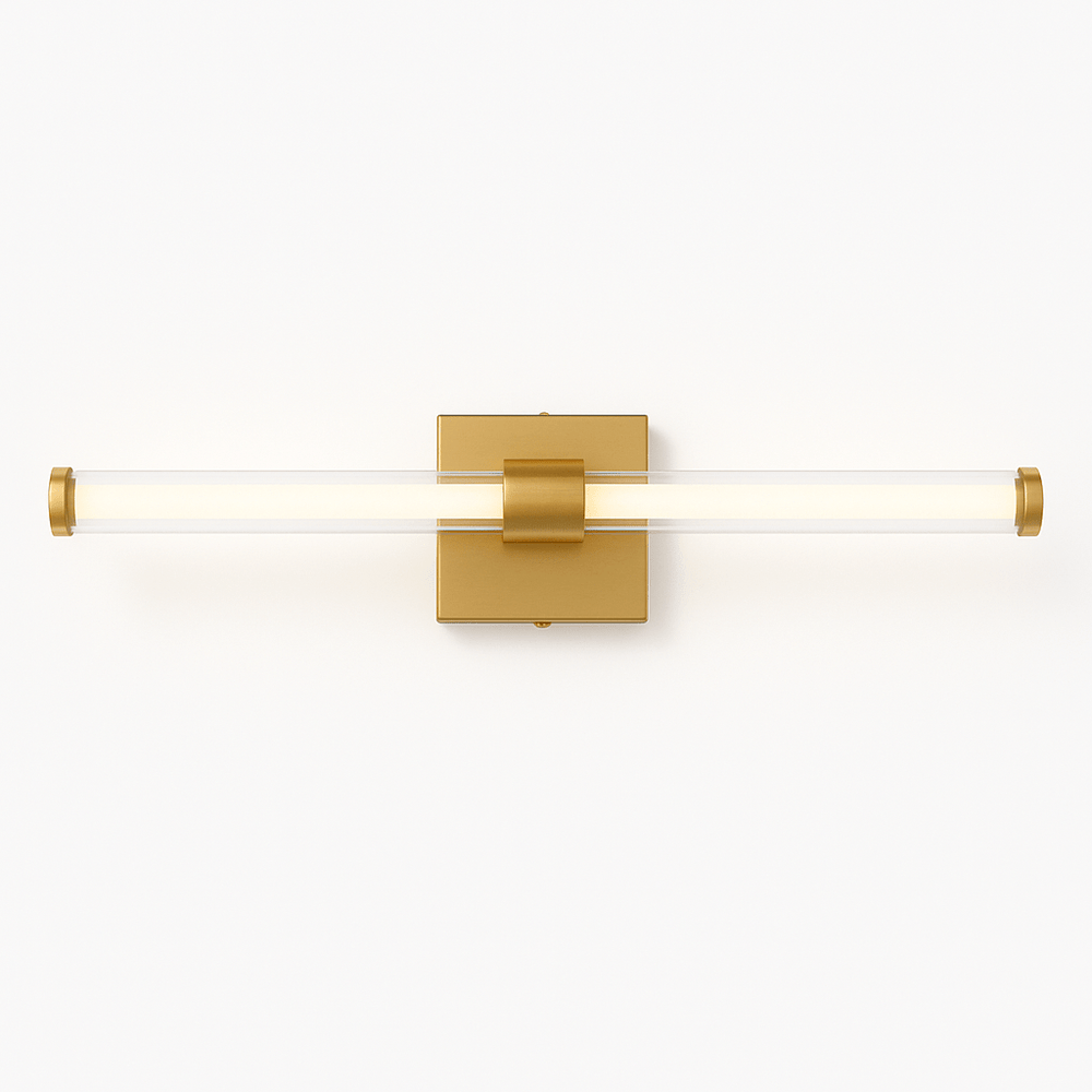Sleek black metal base and transparent glass bars offer balanced, glare-free illumination — perfect for bathrooms, vanity mirrors, or hallway accents.