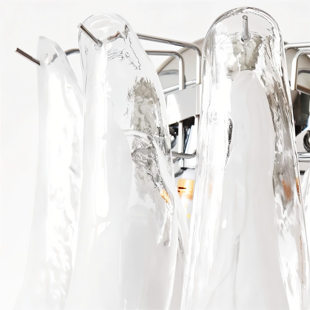 Curved glass elements mimic delicate petals for sculptural elegance.