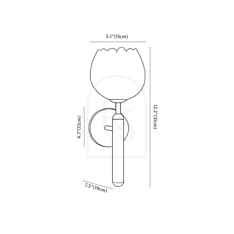 Product Dimensions: D5.1"(13cm) x W7.5"(19cm) x H12.2"(31cm) Wattage (Lumens): 10W (1000lm) Material: Copper, Alabaster Finish: Gold Light Source: LED Light Bulb (Replaceable) Bulb Included: Yes Number of Bulbs: 1 Bulb Base: E14 Dimmable: Upon Request Voltage: 90-260VAC Installation Type: Wall Mount Canopy/Backplate Dimensions: D4.7"(12cm) Certifications: UL, CCC, CE, CQC, EMC, FCC, GS, LVD, PSE, ROHS, SAA, and VDE