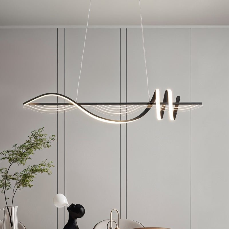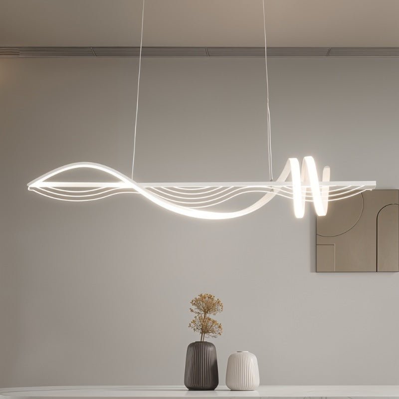 The Fluo Chandelier features a unique wavy shape that adds sophistication to any space.