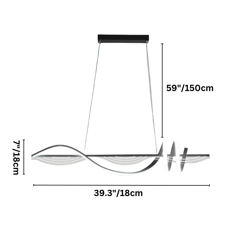 Product Dimensions: L39.3"(100cm) x H7"(18cm) Wattage (Lumens): 46W (5060lm) Weight: 11lbs (5kg) Material: Aluminum, Acrylic Finish: Black, White Light Source: Integrated LED Dimmable: Yes (Optional) Voltage: 90-260VAC Installation Type: Hardwired Chain/Cord Length: Up to 4.9ft (1.5 meter) Adjustable Cord: Yes Canopy/Backplate Dimensions: L15.7"(40cm) x W2.4"(6cm) x H1.6"(4cm) Sloped Ceiling Compatible?: Upon Request Certifications: UL, CCC, CE, CQC, EMC, FCC, GS, LVD, PSE, ROHS, SAA, and VDE