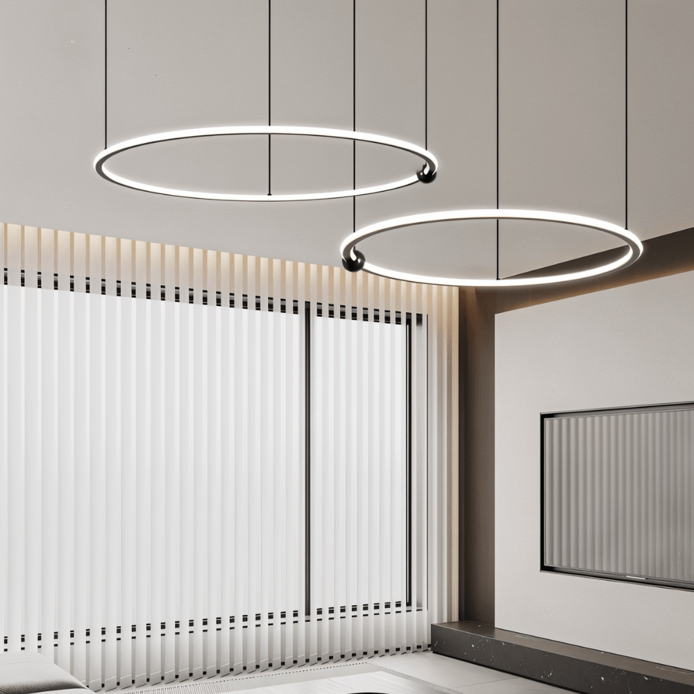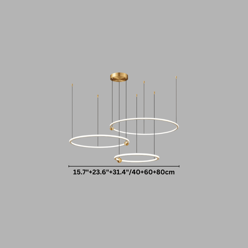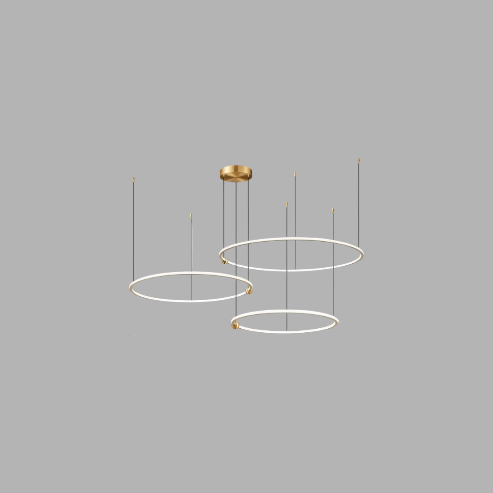 The Frilo Chandelier is a contemporary light fixture crafted from copper and a seamless silicon lampshade, forming clean, circular LED rings in varied sizes. Its minimalist design features precision-suspended rings, creating a floating illusion that enhances modern living rooms, dining areas, or entryways. The geometric symmetry and soft diffusion of light offer both sculptural appeal and functional illumination. Ideal for high ceilings, it’s available in multiple sizes and two refined color finishes. This ceiling-mounted light fixture adds architectural elegance to any space.