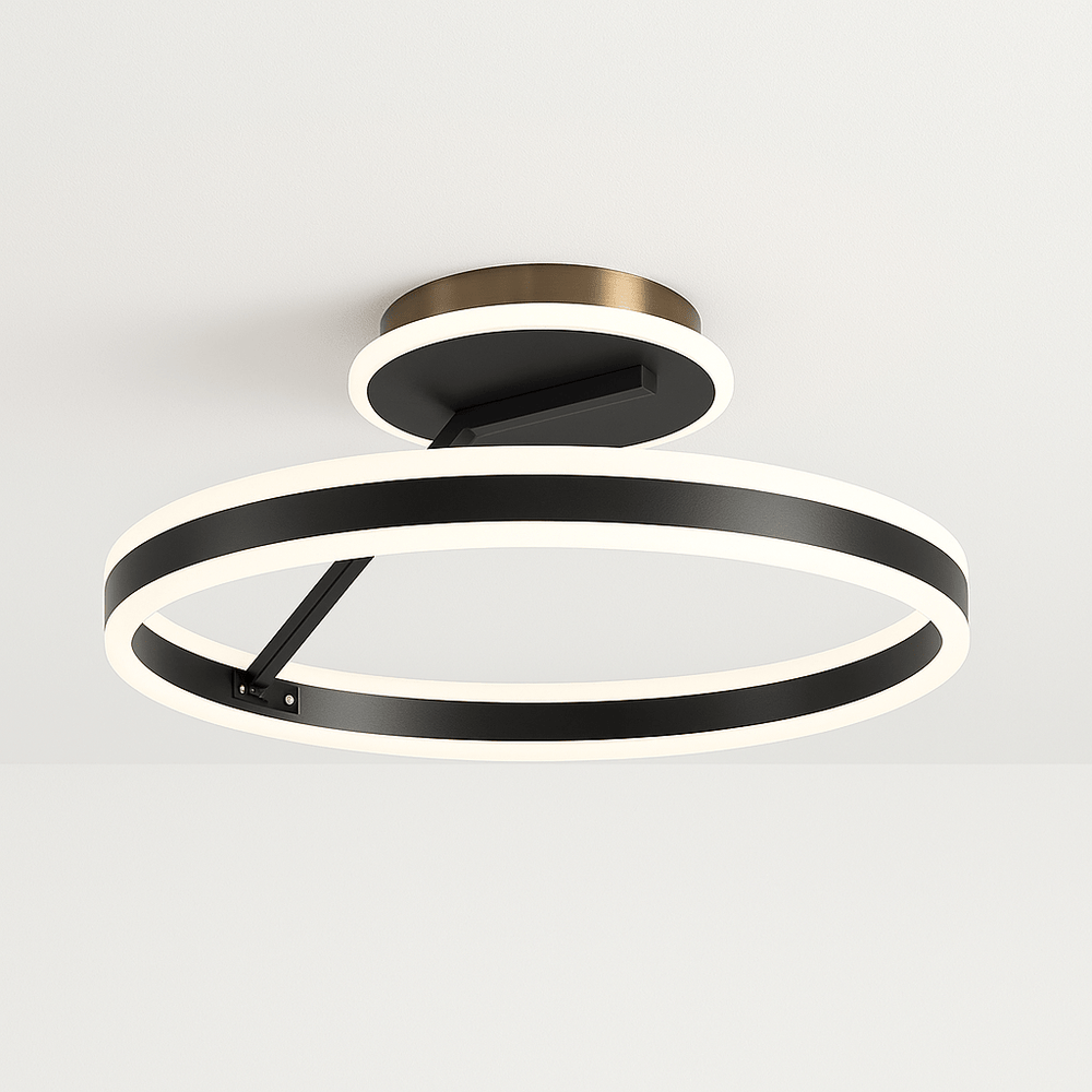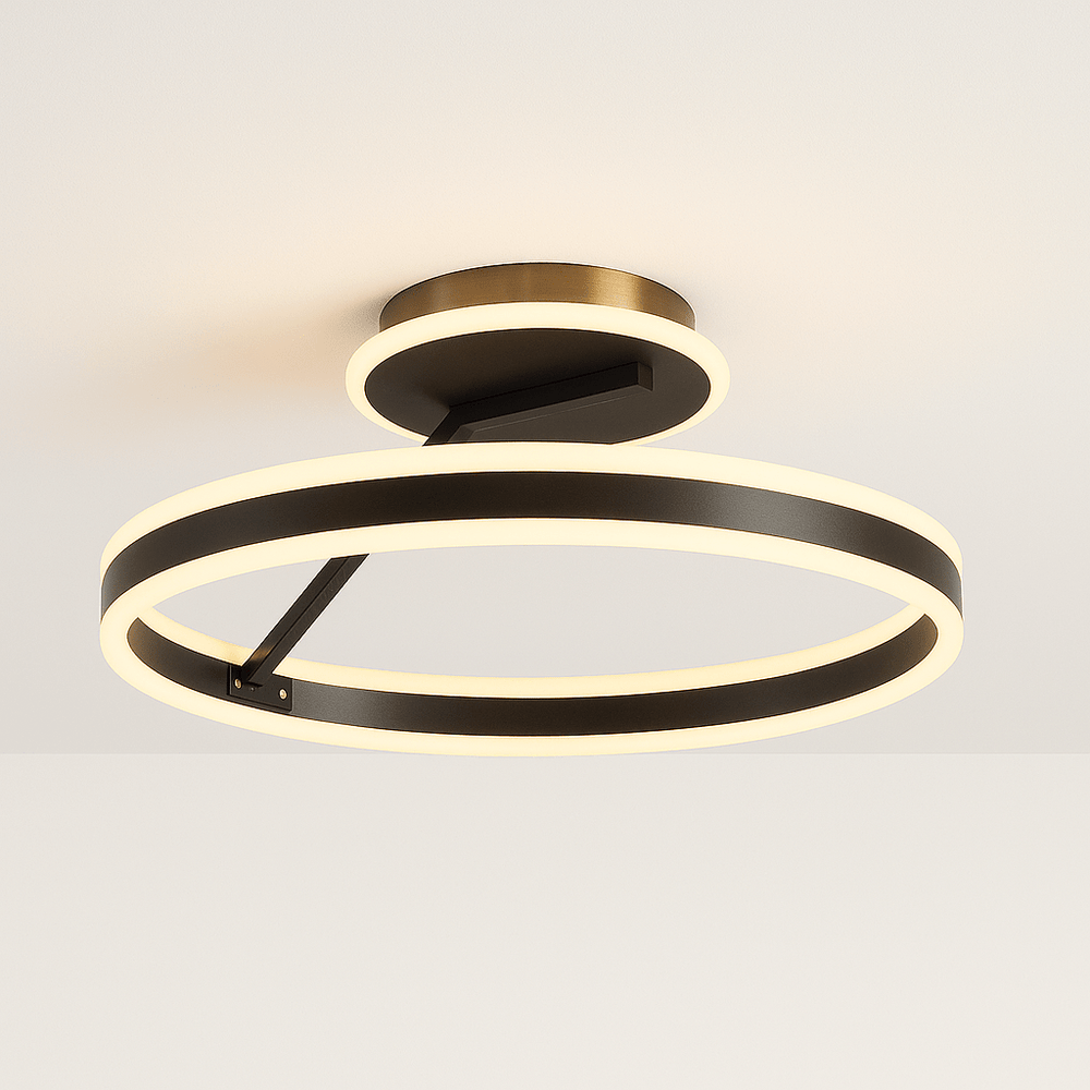 The Gigle ceiling light is a contemporary light fixture featuring interlocking LED rings that create a striking geometric design. Crafted from premium aluminum and acrylic, it delivers a sleek, modern aesthetic with durable construction. Its flush-mounted design makes it ideal for bedrooms, living rooms, and dining areas, seamlessly blending into contemporary interiors. The integrated LED technology ensures energy-efficient, long-lasting illumination, casting soft, ambient lighting across the ceiling.