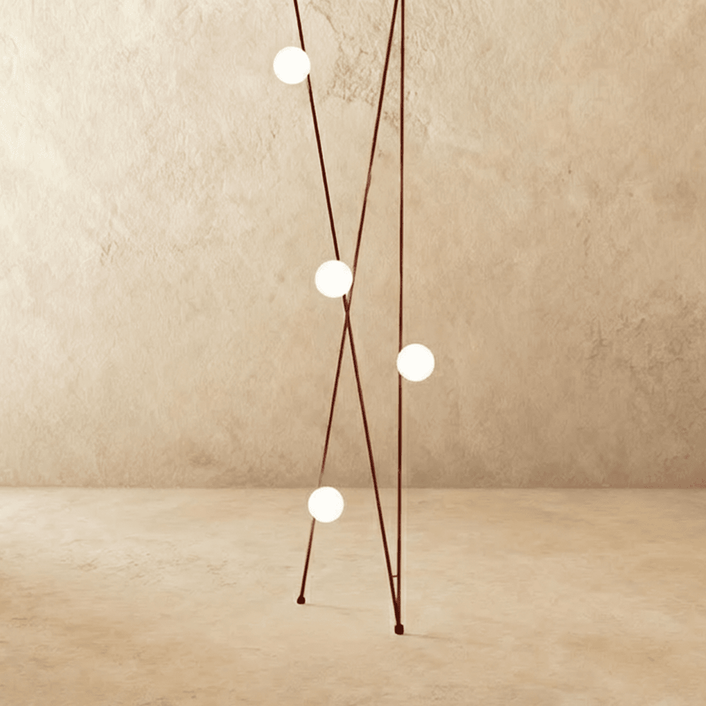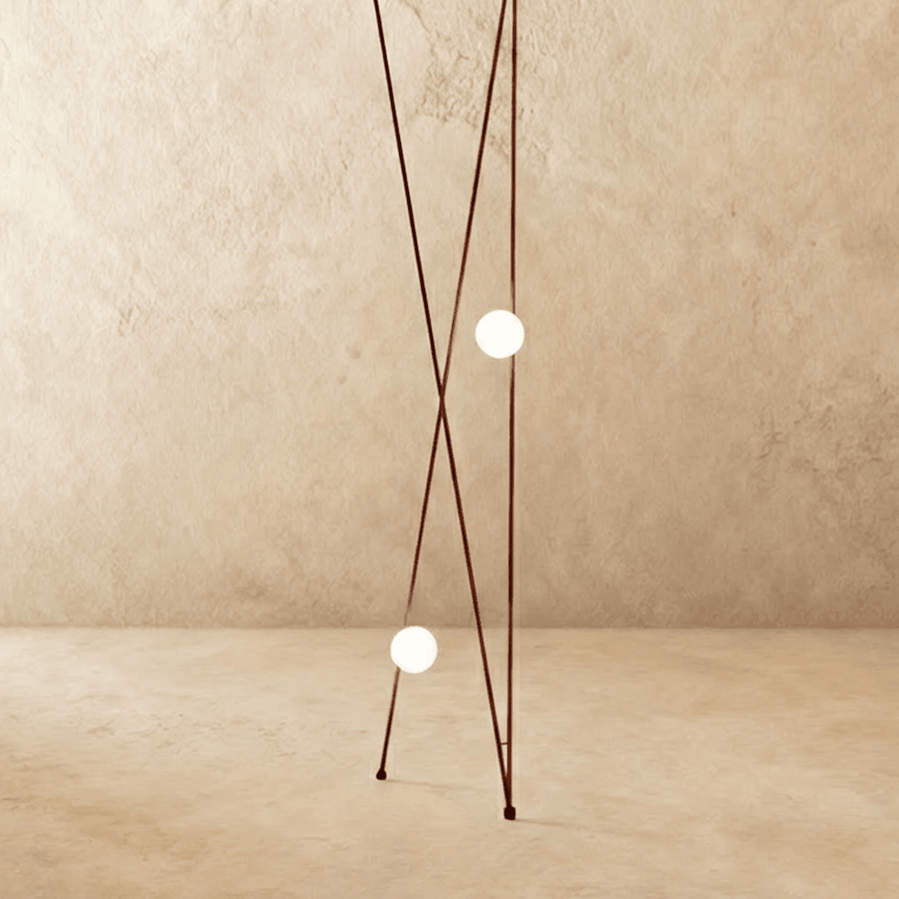 The Glita Floor To Ceiling Lamp is a tension-mounted light fixture featuring a glass orb lampshade suspended by a woven fabric strap and supported by iron hardware for a clean, architectural profile. Its floor-to-ceiling installation makes it ideal for living rooms, bedrooms, lounges, and transitional areas. The adjustable height system accommodates different ceiling levels while maintaining a refined linear form. Designed for ambient, diffused illumination, this fixture functions as both a lighting solution and a sculptural interior element.