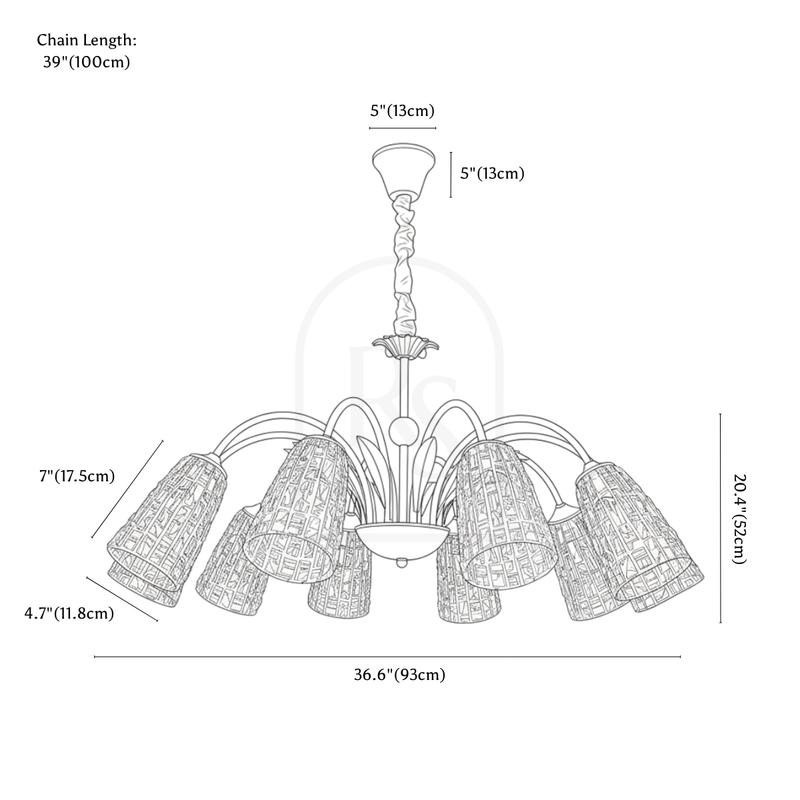 Weight: 8.5Kg, 12.4Kg, 14.8Kg Material: Iron, Glass Finish: Bronze, Black Light Source: LED Light Bulb (Replaceable) Bulb Included: Yes Number of Bulbs: 5, 8, 10 Bulb Base: E14 Dimmable: Upon Request Voltage: 90-260VAC Installation Type: Hardwired Chain/Cord Length: Up to 3.3ft (1 meter) Adjustable Cord: Yes Sloped Ceiling Compatible?: Yes Certifications: UL, CCC, CE, CQC, EMC, FCC, GS, LVD, PSE, ROHS, SAA, and VDE