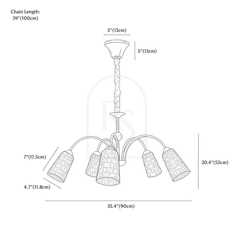 The Glovy Chandelier is crafted from durable iron paired with elegant, textured glass lampshades, creating a refined and sophisticated look.