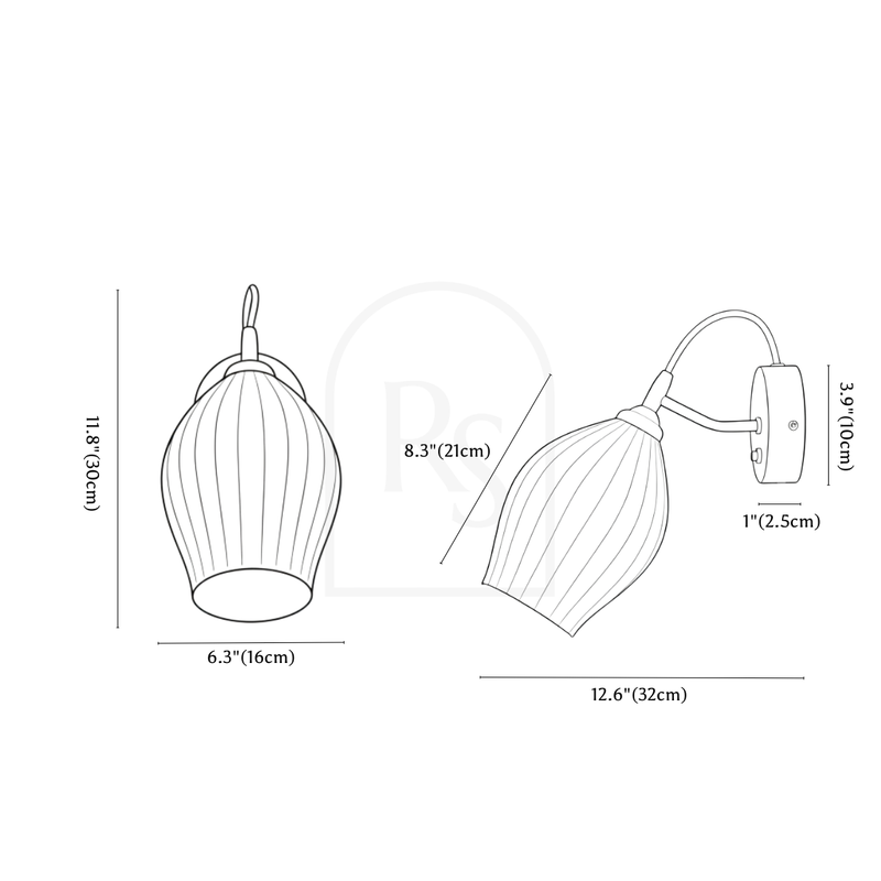 Product Dimensions: D6.3"(16cm) x W12.6"(32cm) x H11.8"(30cm) Wattage (Lumens): 10W (1000lm) Material: Iron, Ceramic Finish: Nickel, Gold Light Source: LED Light Bulb (Replaceable) Bulb Included: Yes Number of Bulbs: 1 Bulb Base: E14 Dimmable: Upon Request Voltage: 90-260VAC Installation Type: Wall Mount Canopy/Backplate Dimensions: 5"(13cm) Certifications: UL, CCC, CE, CQC, EMC, FCC, GS, LVD, PSE, ROHS, SAA, and VDE