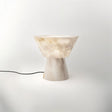 The alabaster upper body of the Henqet Alabaster Table Lamp significantly enhances its design by adding a timeless elegance and a warm, inviting glow. This illuminated feature not only magnifies the natural beauty of alabaster but also creates a cozy atmosphere, making it a perfect blend of contemporary design and classic sophistication. The alabaster's subtle translucence and the lamp's meticulous craftsmanship ensure it stands out as both a functional light source and a versatile decorative piece, ideal for any interior setting.