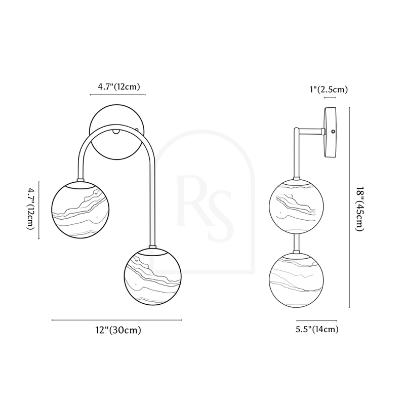 Product Dimensions: 11.8"(30cm) x 17.7"(45cm) Material: Alabaster Marble, Iron Finish: Brass, Black Light Source: Integrated LED Dimmable: Upon Request Voltage: 90-260VAC Installation Type: Wall Mount Canopy/Backplate Dimensions: D4.9"(12.5cm) Certifications: UL, CCC, CE, CQC, EMC, FCC, GS, LVD, PSE, ROHS, SAA, and VDE