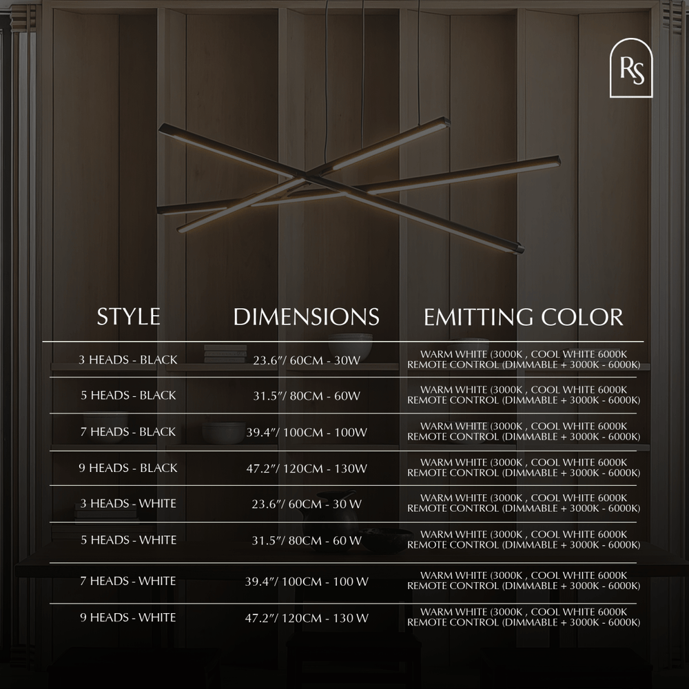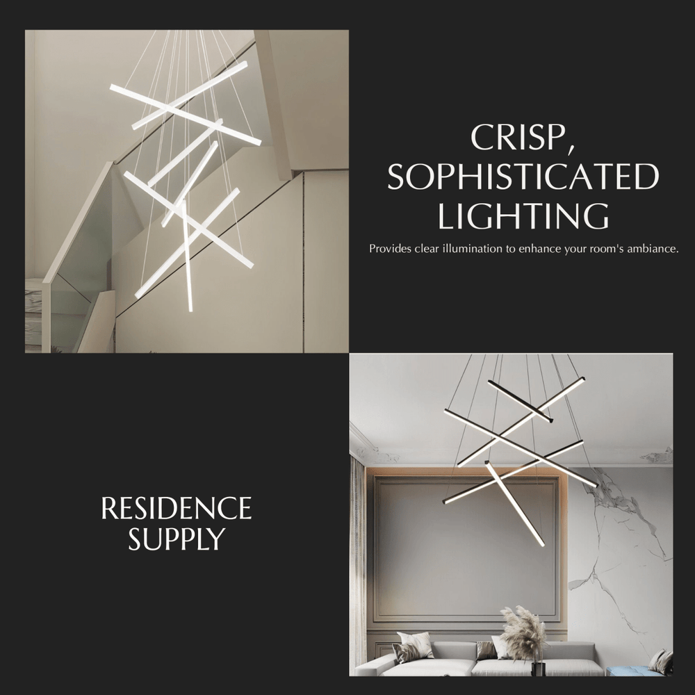 Enhance the luminance of your living space with the exquisite and refined Ilona Chandelier. This modern yet opulent masterpiece radiates a commanding brilliance through its meticulously arranged linear lights. Crafted from premium aluminum, boasting a bold black or white finish, and complemented by silicon diffusers, it casts a crisp and sophisticated radiance. Delicately suspended by wires, this chandelier offers customizable height, ensuring a flawless fit for your discerning taste and elegant space.