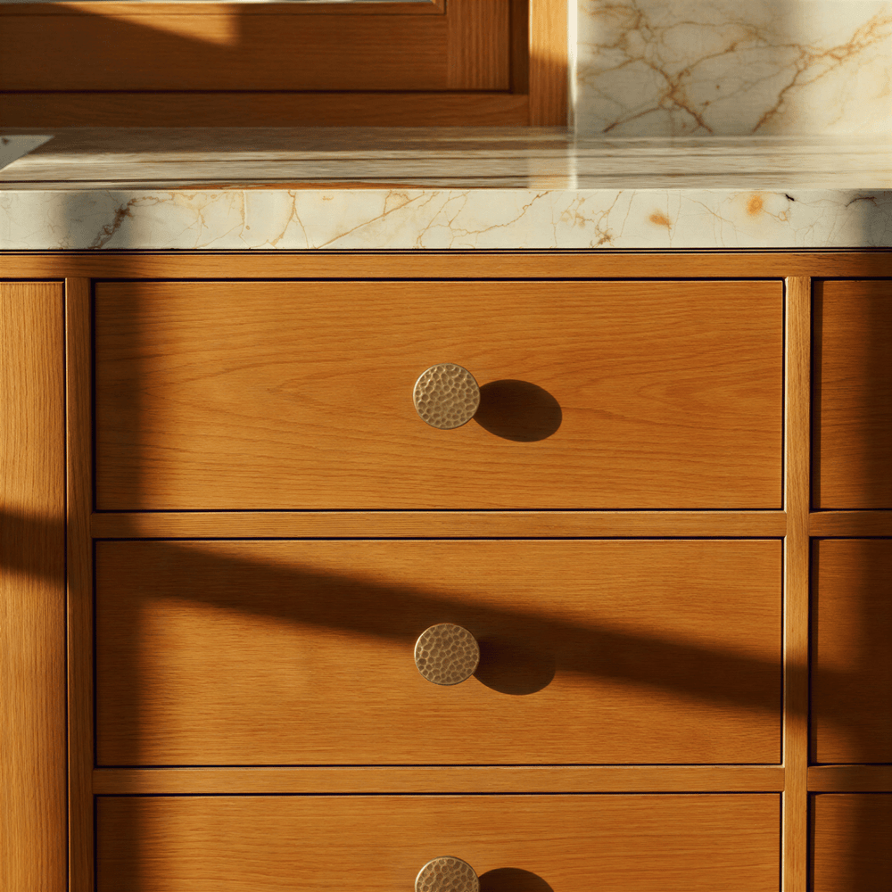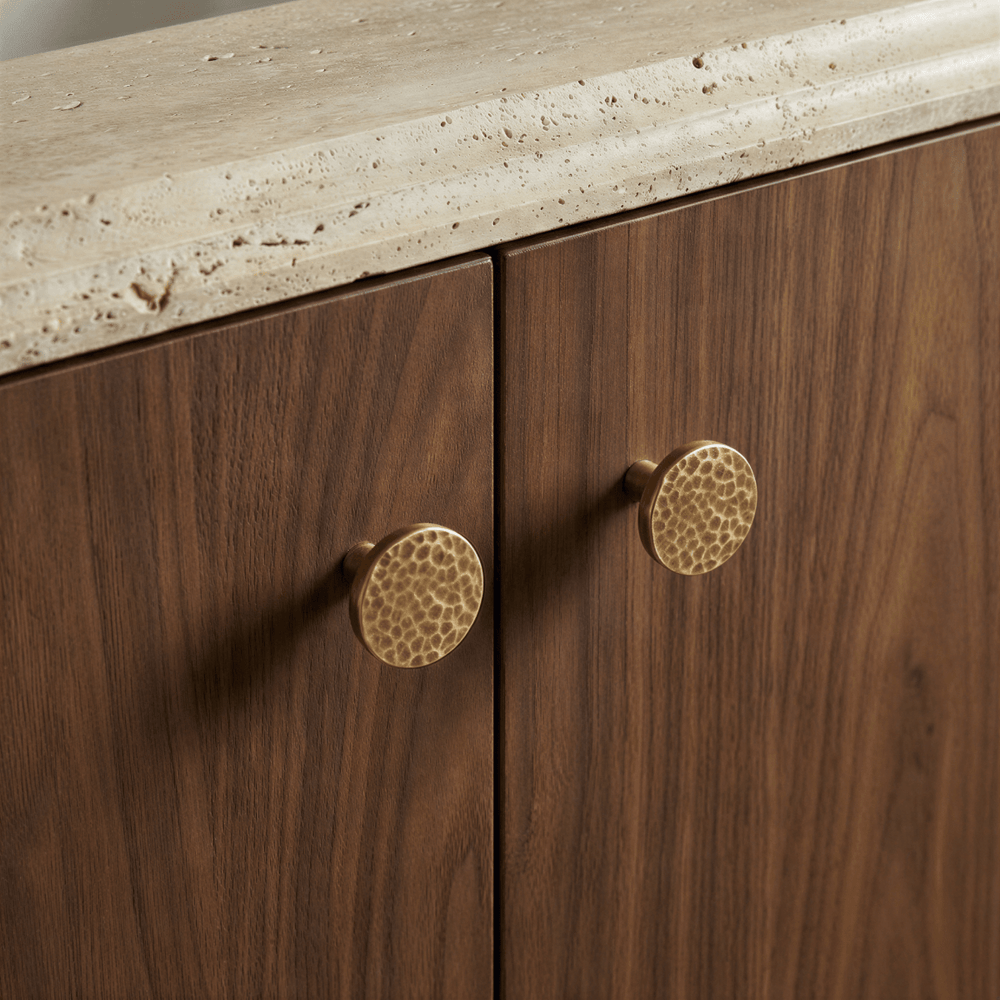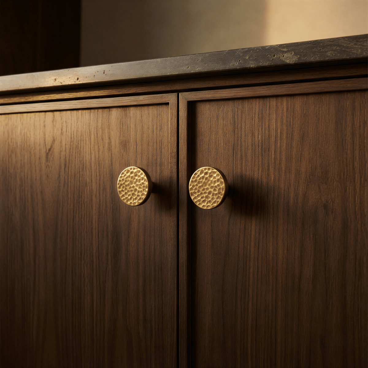 3YEARSSolid brass cabinet knob with a refined faceted texture that catches the light beautifully, adding a warm, tactile accent to kitchen cabinets, wardrobes, and furniture.