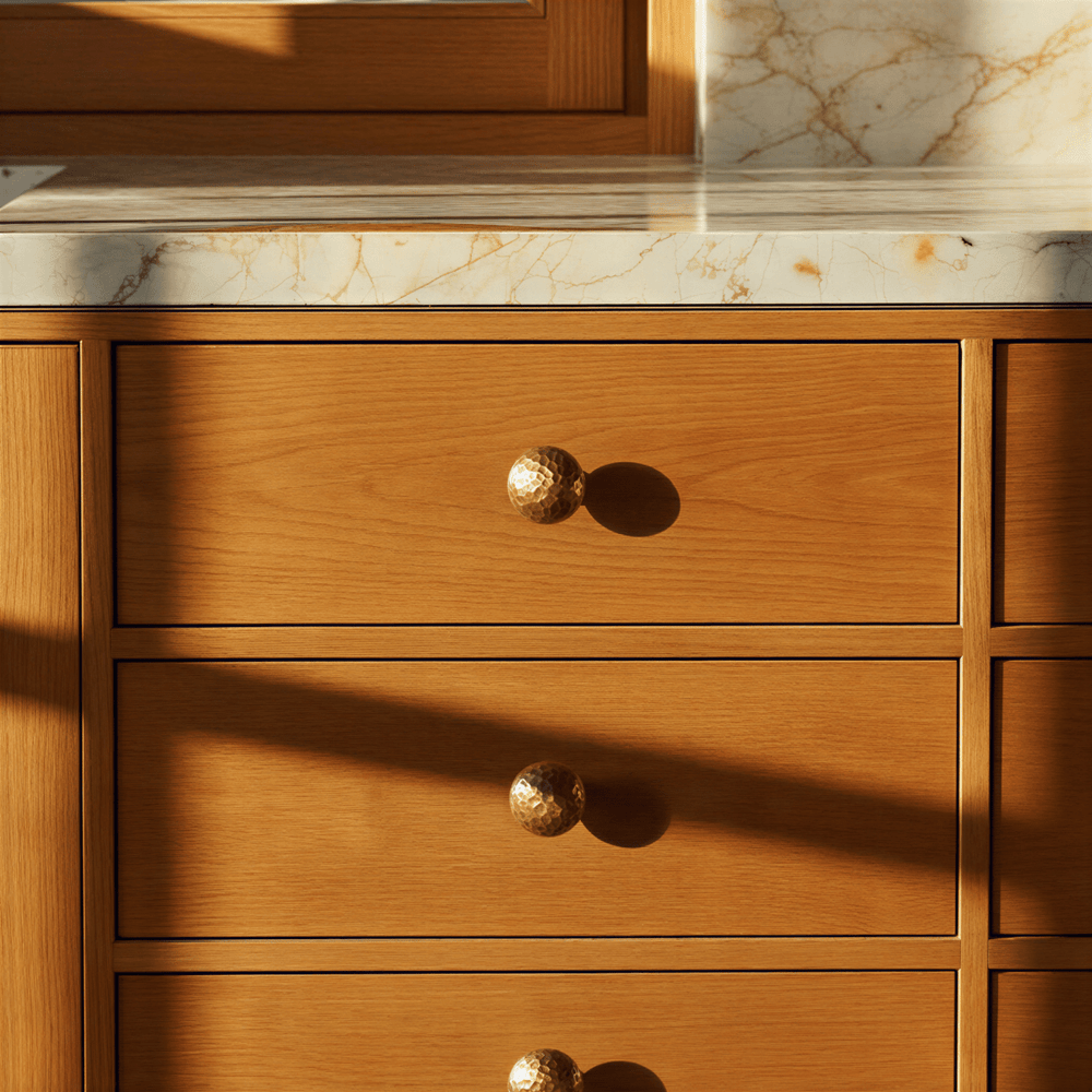 The Ivro Knob introduces a quiet sculptural detail to cabinetry and furniture. Its rounded silhouette and faceted surface catch light gently, adding subtle depth and warmth to cabinet fronts. Small in scale yet visually distinctive, it brings a refined, balanced presence to everyday spaces.