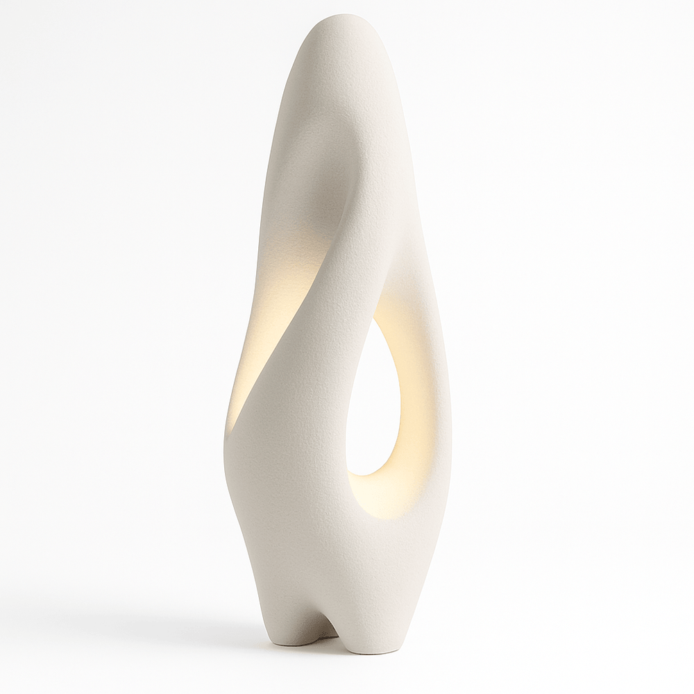 The Izbu Floor Lamp is a striking light fixture crafted from polystyrene, featuring a sculptural with smooth curves and hollowed details. Its artistic shape diffuses soft, ambient light, making it a centerpiece for modern living rooms, lounges, or entryways. This floor lamp combines functionality with an artistic aesthetic, elevating contemporary interiors while providing warm, inviting illumination.