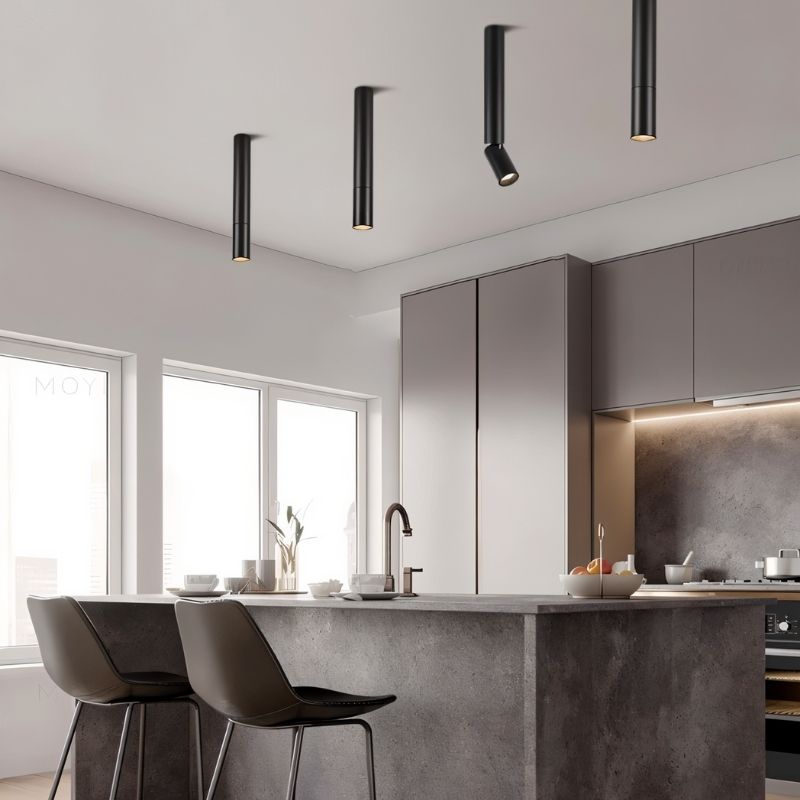 The Jorah Ceiling Light is a modern aluminum light fixture with sleek cylindrical heads that provide adjustable directional lighting. Its minimalist design enhances contemporary interiors, making it ideal for living rooms, dining spaces, or offices. Combining functionality with clean lines and a matte finish, it suits various decor styles while delivering dynamic illumination.