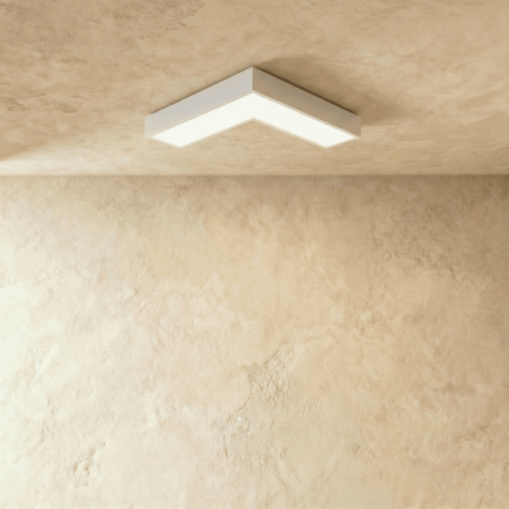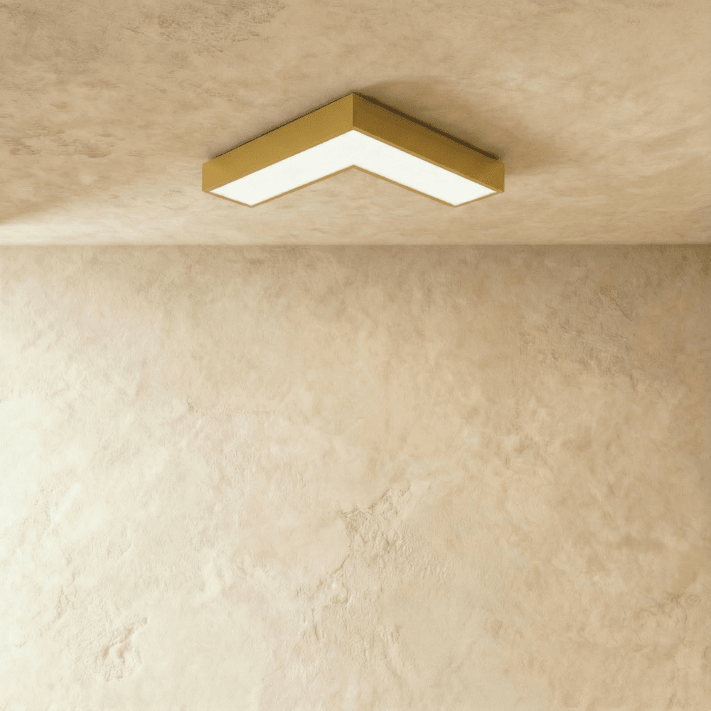 The Korner Ceiling Light, Features a rectangular frame and a shade with a white acrylic diffuser, it emits soft and pleasing light. Ideal for illuminating formal gatherings in the dining area or adding flair to everyday family dinners, Korner complements any part of your home, including bedrooms, hallways, or entryways, thanks to its sleek, minimalist, and modern design.
