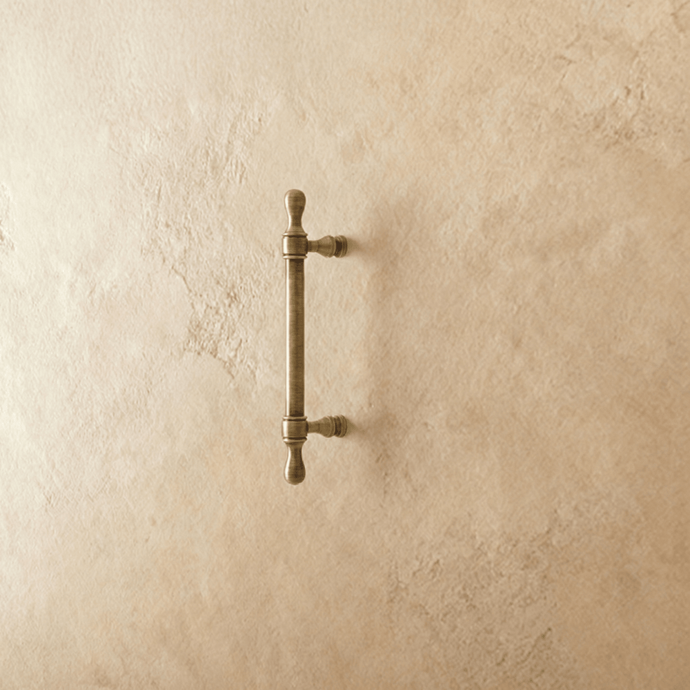 Kuno Knob & Pull Bar fixtures enhance historical homes by adding a vintage touch with their timeless antique finish and high-quality brass construction, ensuring durability and style that complements the classic aesthetic of historical interiors.