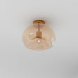 The Lance Ceiling Light combines modern and classic styles through its hand-blown glass lampshade available in smokey or amber hues, paired with a gold or black finished iron fixture. This blend of materials and finishes creates a versatile, transitional look that fits both contemporary and traditional spaces.
