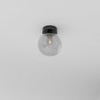 The Lance Ceiling Light features a hand-blown glass lampshade and a gold or black finished iron fixture.