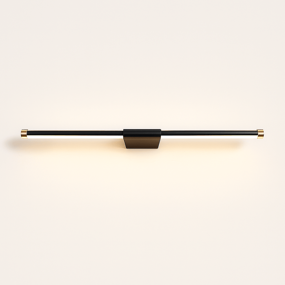 The Lisorva Wall Lamp is a sleek and functional lighting fixture crafted from durable metal and PC, designed to elevate bathroom aesthetics. It features a streamlined, bar-shaped design with subtle brass accents at the ends, offering a modern and minimalist appeal. Perfectly suited for bathroom vanity mirrors, it delivers evenly distributed illumination, enhancing functionality and style.