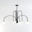 The Lucille Chandelier is constructed with arched iron frames and opal glass globe shades, featuring non-toxic and durable paint.