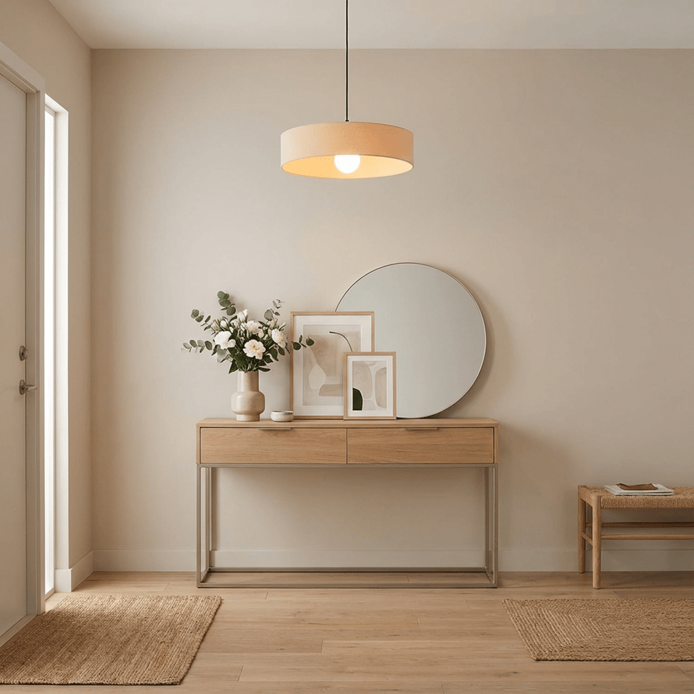Smooth fabric finish diffuses light softly, enhancing ambient illumination — perfect for dining areas and living rooms with a contemporary aesthetic.